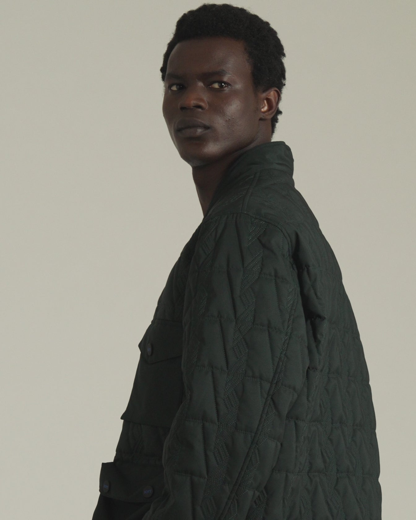 QUILTED JACKET WITH JACQUARD PATTERN AND UTILITY POCKETS