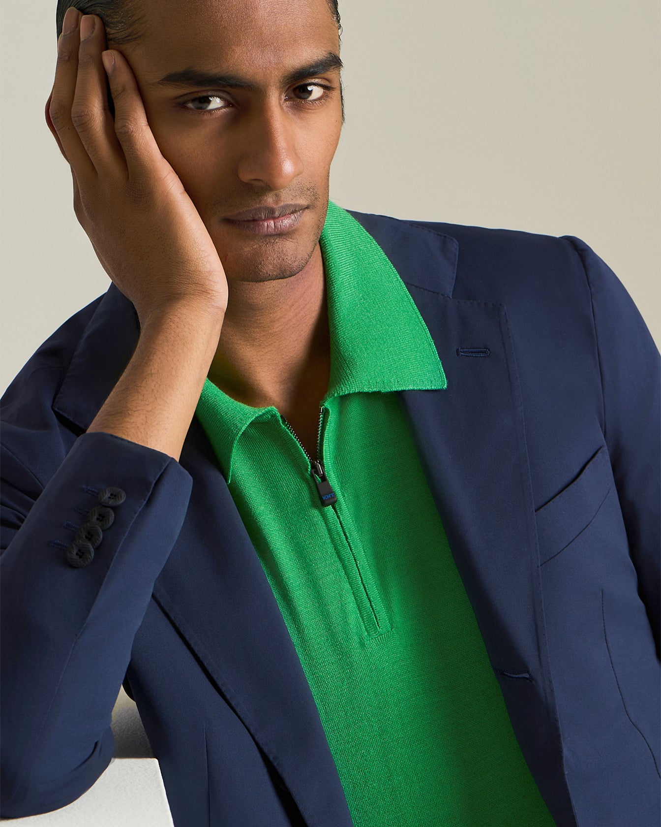 KNT (Kiton New Textures) reinterprets Kiton’s sartorial excellence through ongoing textile experimentation, resulting in a collection with a free, innovative spirit. Beginning with lighter fabrics, KNT redefines the concepts of versatility, practicality and dynamism, without ever compromising on elegance. The capsule collection seamlessly combines classic masculine elegance with cutting-edge sportswear, creating innovative pairings of garments and materials that embody a fresh vision of urban menswear. Innovation also extends to the exclusive yarns, processed using machinery uncommon in the tailoring world, resulting in textures and patterns never before seen in a formal wardrobe.