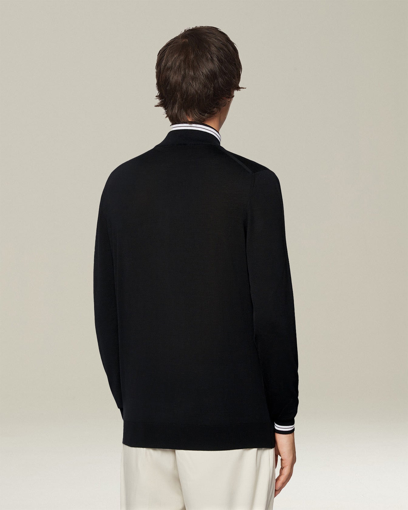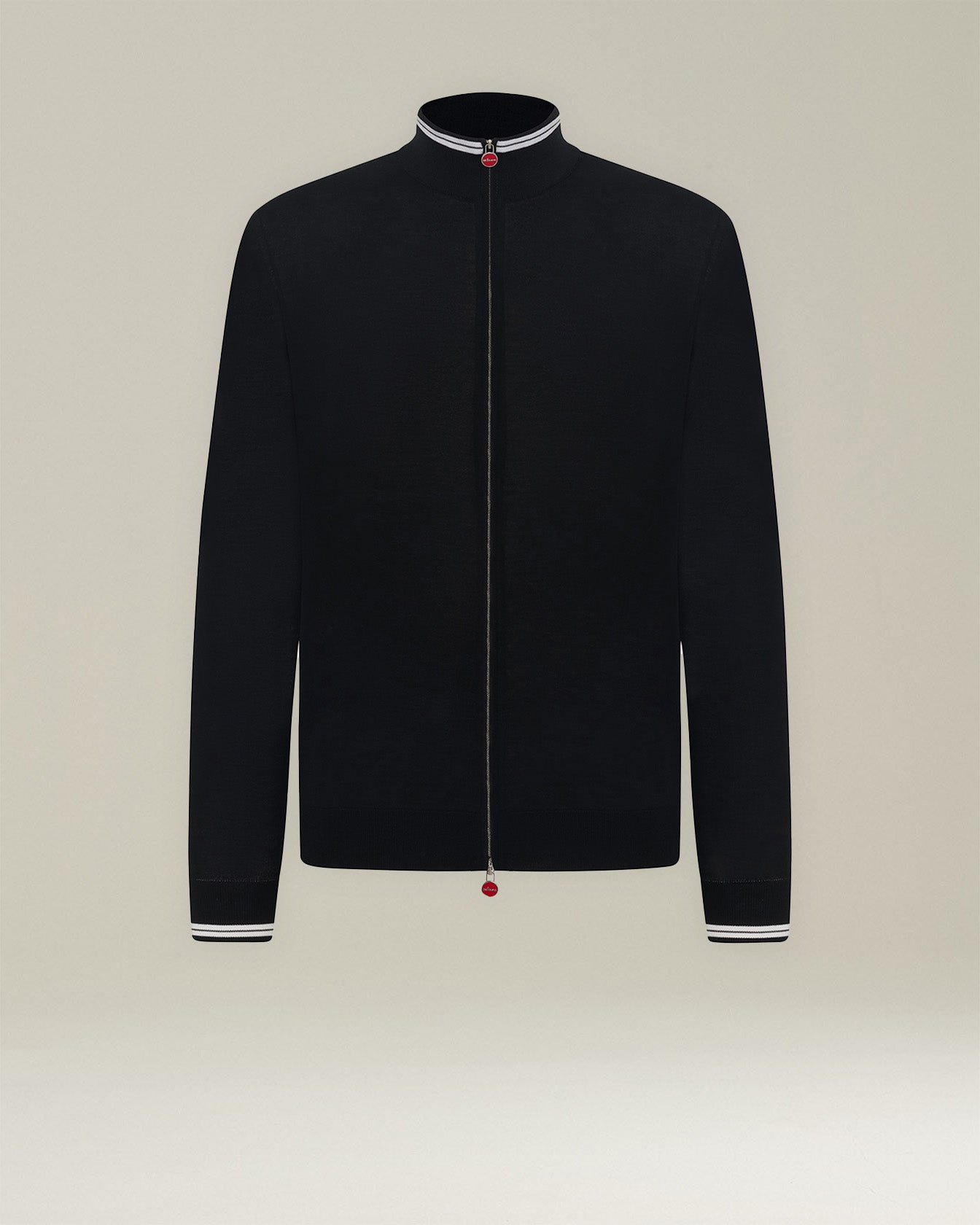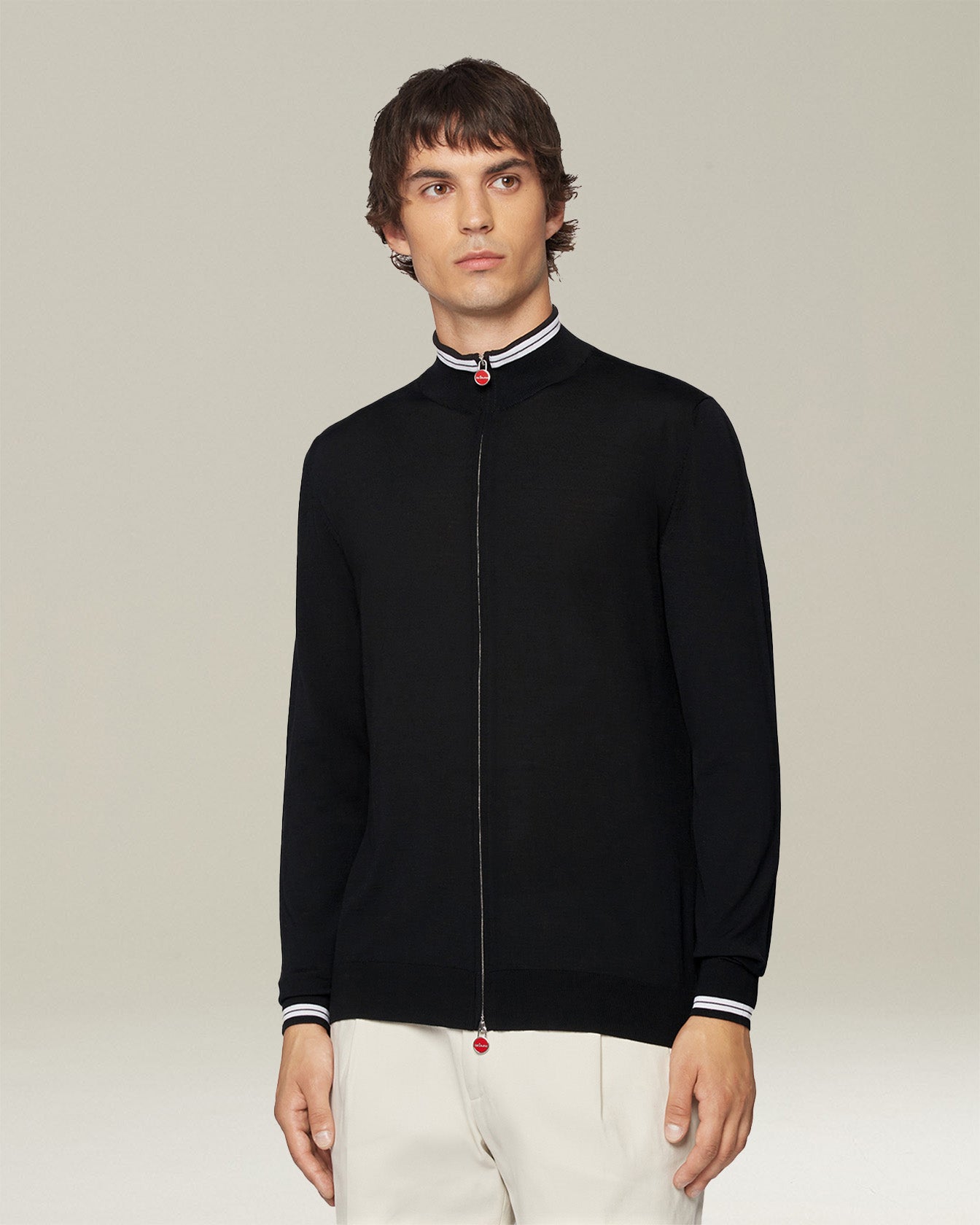 The cardigan’s essential aesthetic blends beautifully with the imperceptible lightness of our exclusive wool yarn. The enveloping texture enhances the contrasting profile details, giving the garment a sophisticated, sporty elegance. Its fit, with regular, comfortable volumes, makes it an indispensable element of an understated but distinctive style. Kiton knitwear represents a perfect balance between respect for tradition and a relentless pursuit of perfection.