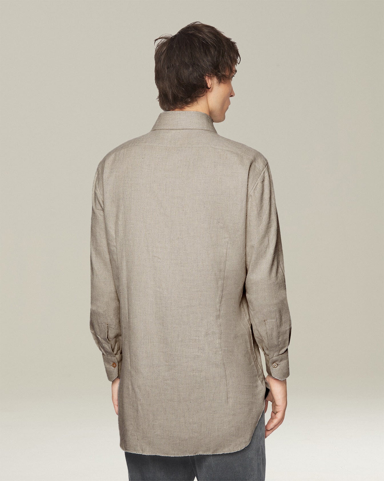The soft, high quality cotton flannel elegantly reinterprets a tailoring classic in a contemporary, effortless way. Perfect for cold weather, this shirt offers warmth and comfort without compromising on style, ideal under a blazer or paired with smart trousers, adding a touch of sophisticated practicality to a man’s wardrobe. Made with meticulous care through 22 handcrafted steps in our Naples atelier, this shirt embodies the quintessence of artisanal savoir faire: each cut of fabric, precisely aligned for a uniform pattern, conceals hand-sewn seams that are extraordinarily soft and ensure exceptional comfort, harmoniously following your movements and enhancing your silhouette. The sophistication of the garment is further enhanced by the hand-carved buttons made from Sydney Pinctada Maxima mother of pearl, cultivated off the coast of Australia.