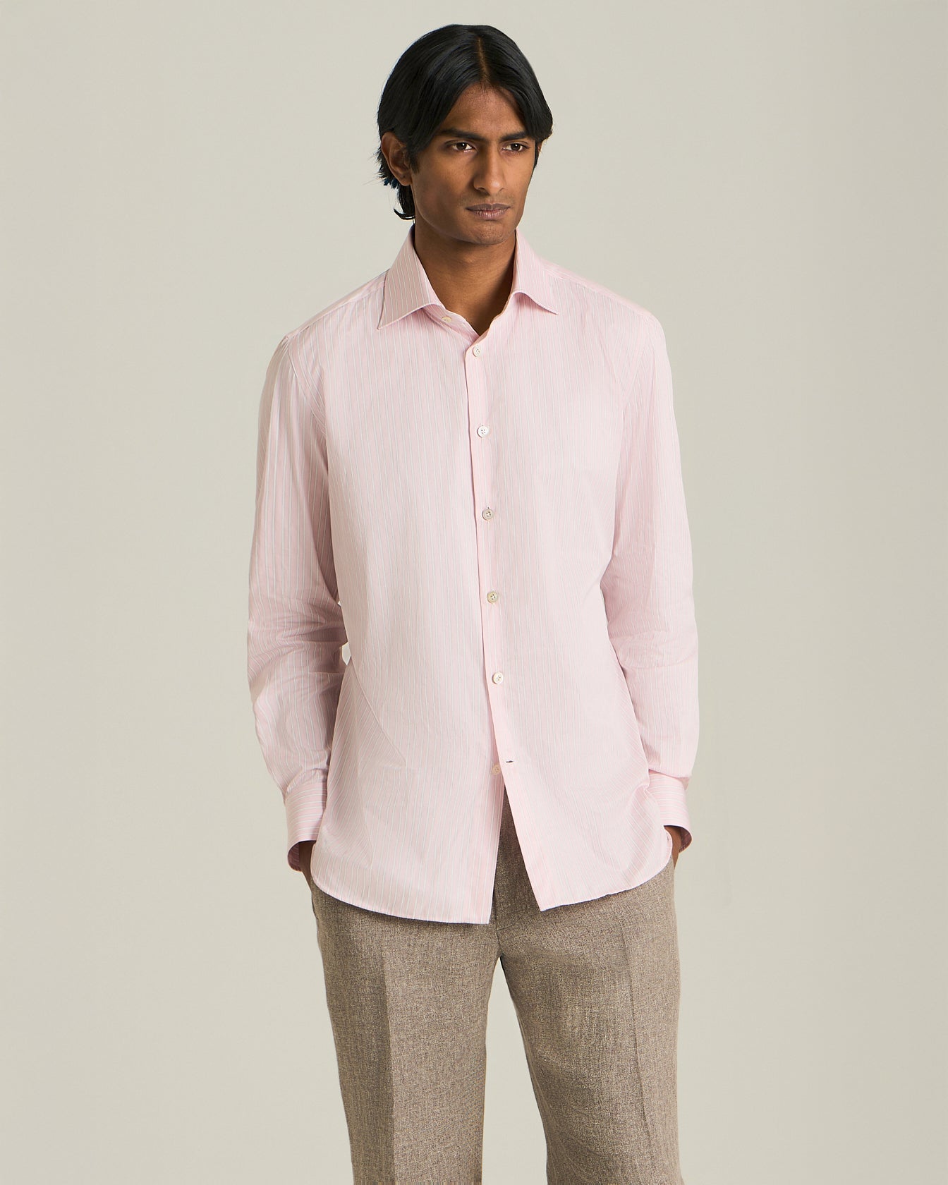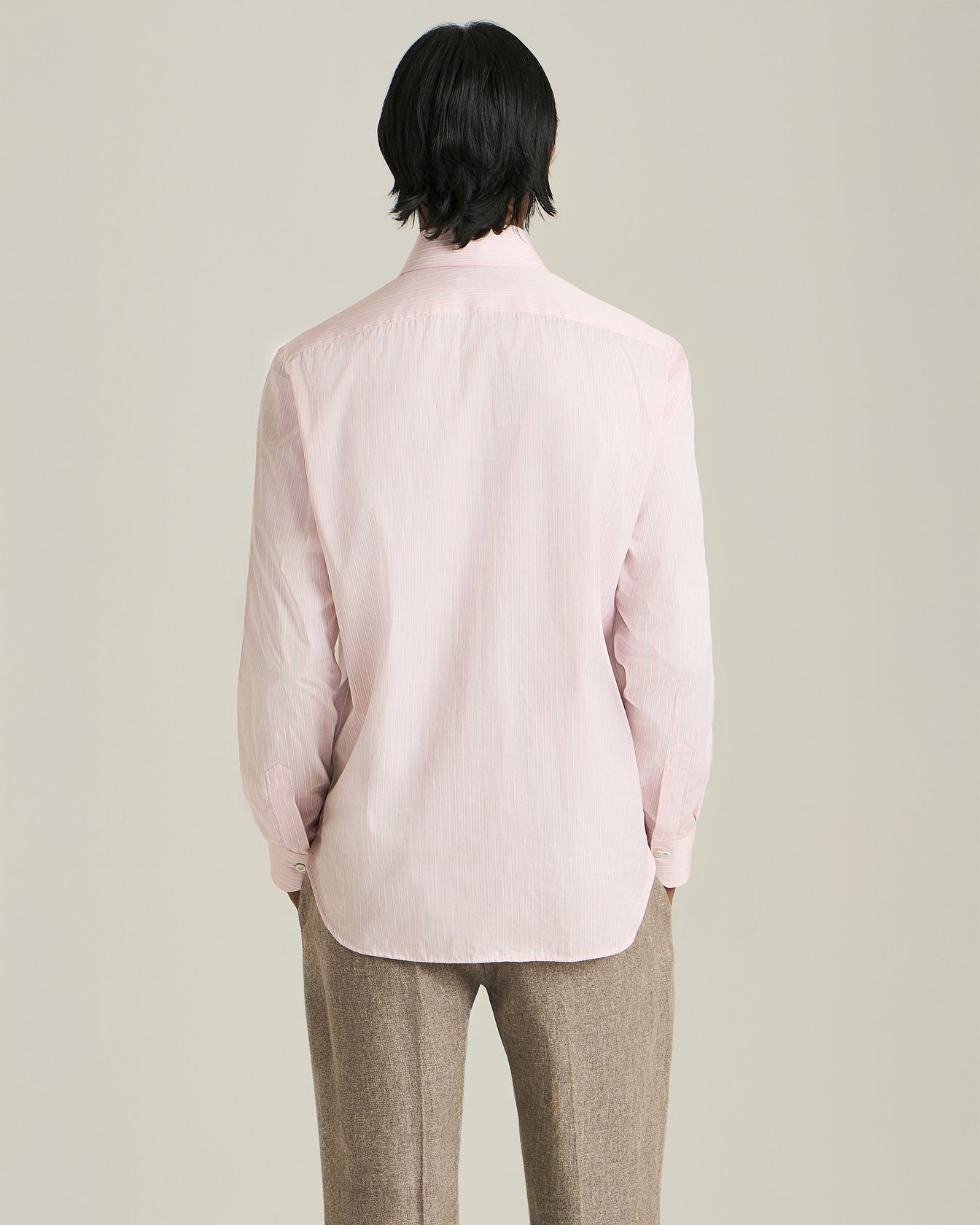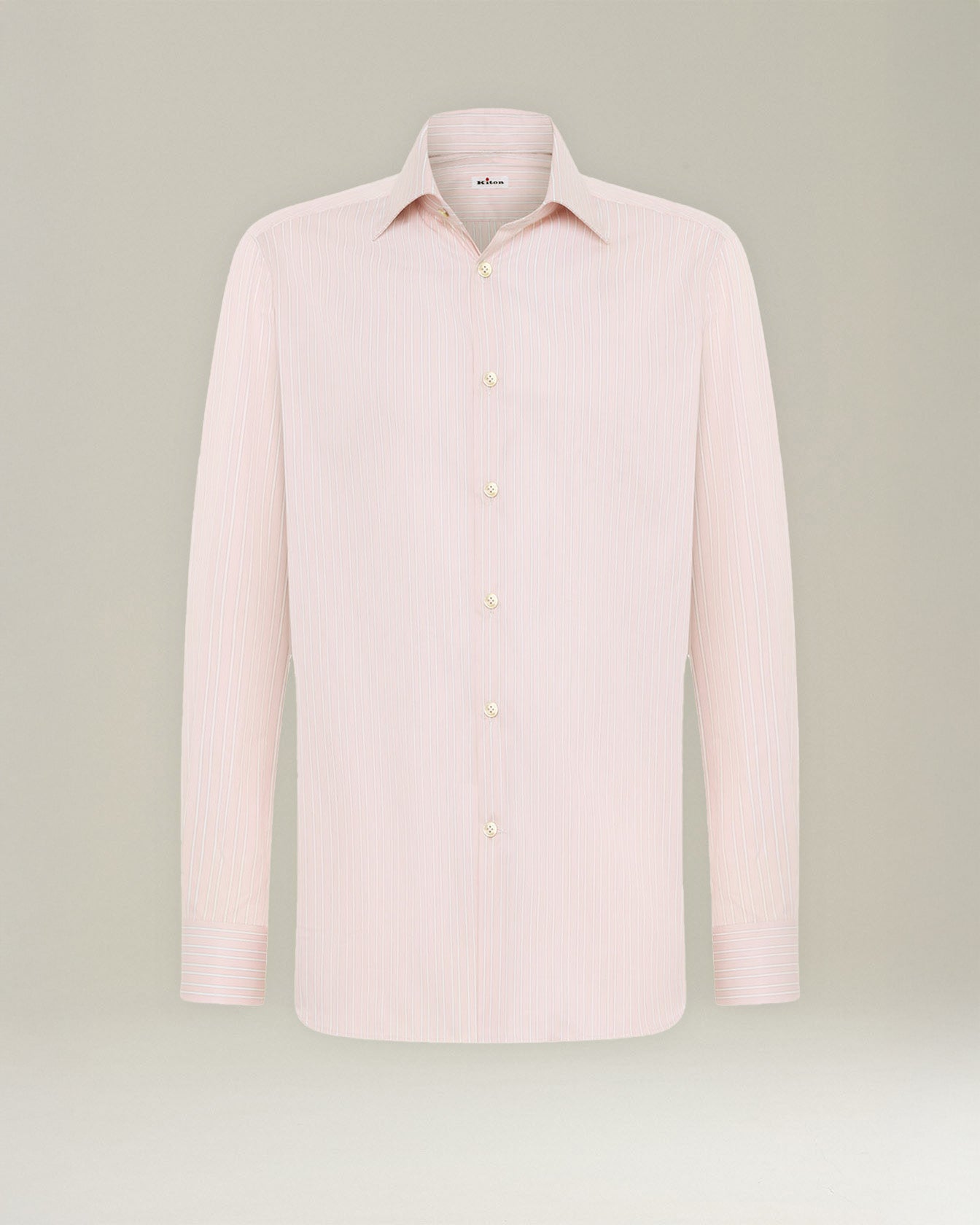 The timeless elegance of the striped pattern characterises this Kiton shirt, crafted from fine natural cotton fibre – a garment that blends classic sophistication with contemporary style. Meticulously handcrafted in 22 steps in our Naples atelier, this shirt embodies true artisanal savoir-faire. Ideal for professional and formal settings, this shirt also excels in versatility. The sophistication of the garment is further enhanced by the hand-carved buttons crafted from fine Sydney ‘Pinctada Maxima’ mother of pearl, cultivated off the coast of Australia, adding an exclusive, sought-after touch.