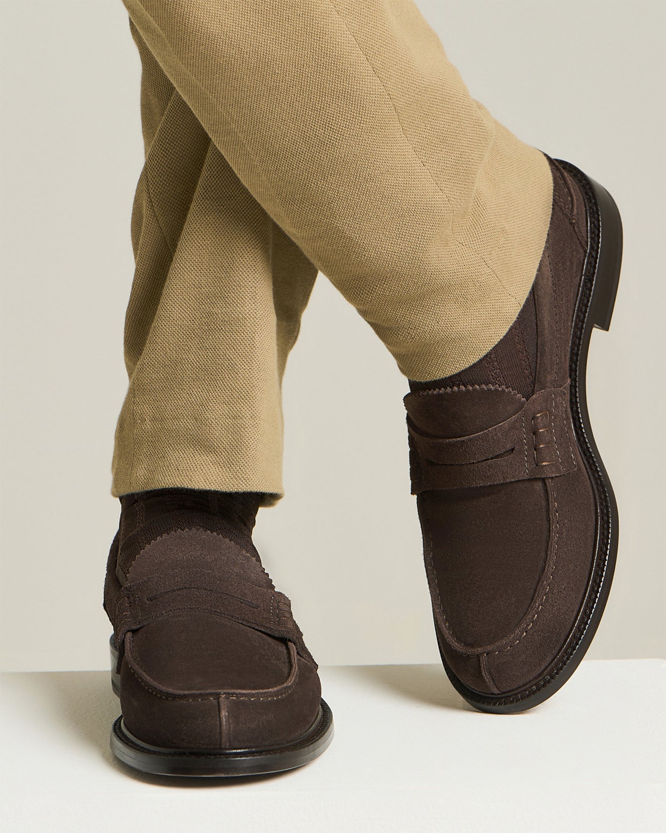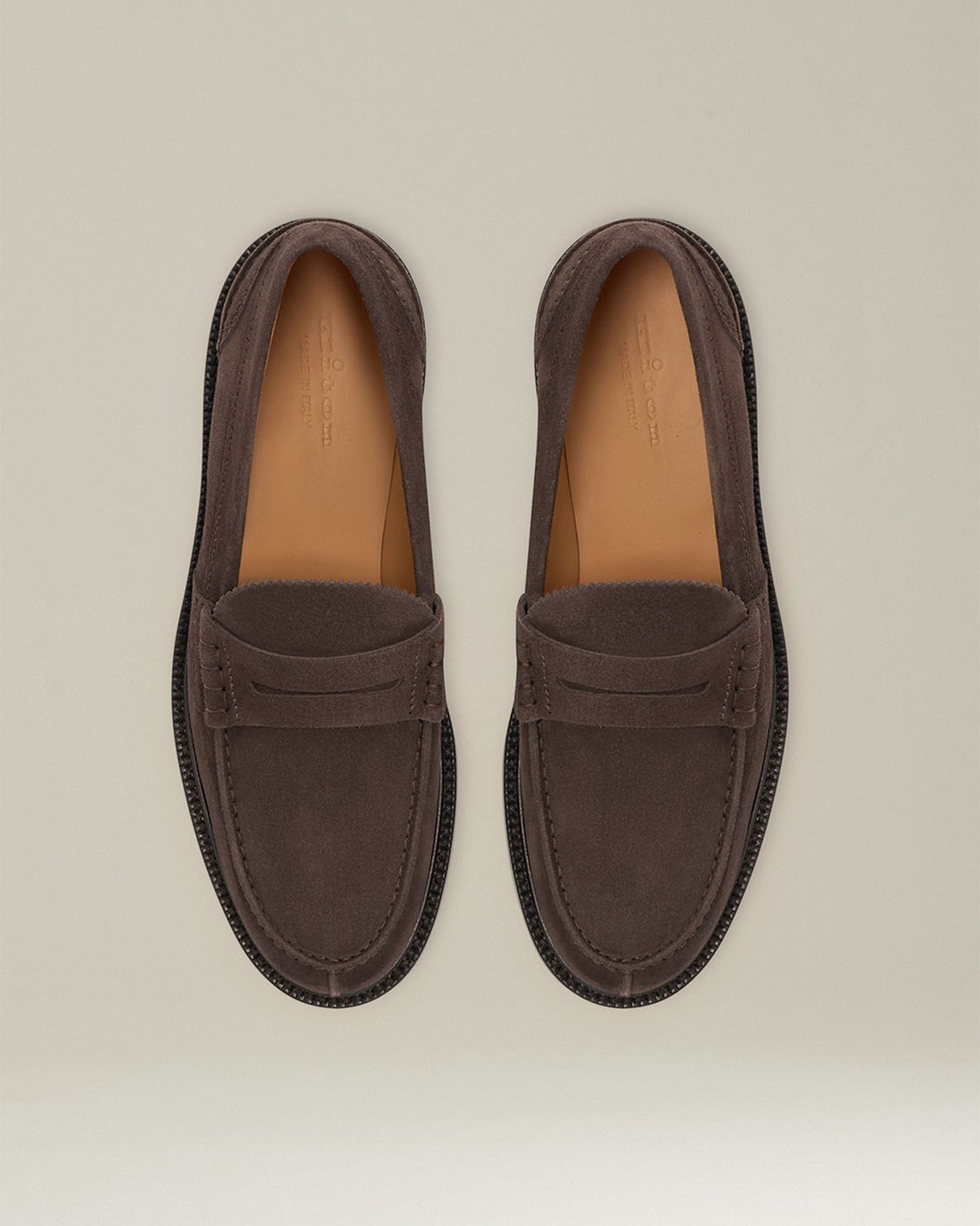 This loafer, crafted from fine suede calfskin, is masterfully reinterpreted with a modern twist. The clean, sophisticated silhouette accentuates the shoe’s inherent elegance, while the meticulous craftsmanship ensures a comfortable, impeccable fit. The soft texture of suede calfskin adds a touch of discreet luxury, elevating every outfit with an unmistakable note of class.