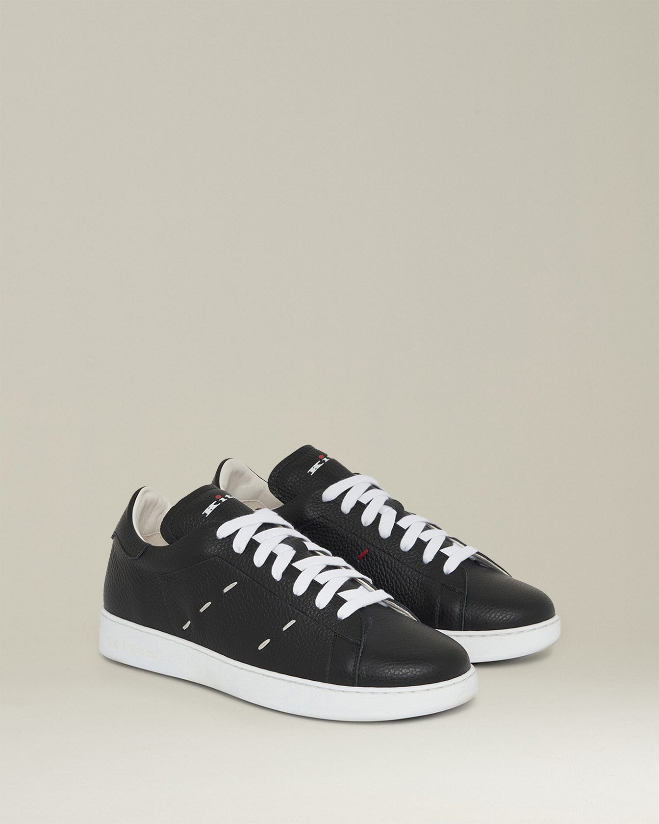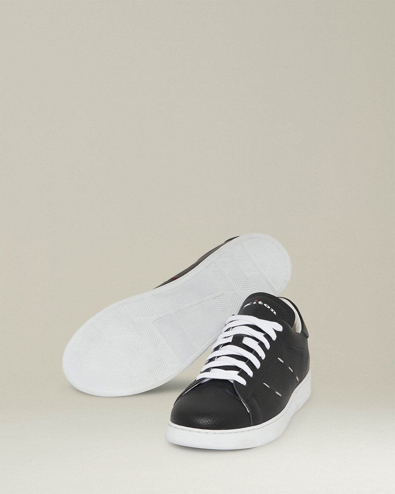 Kiton’s philosophy is expressed through a constant commitment to aesthetic and technical innovation, while maintaining a strong connection to tradition. Our sneakers fully embody this principle, putting quality at the top of our priorities. Decorated with contrasting maxi-stitching detailing, a tribute to the precious heritage of craftsmanship, this model combines essential design with the highest quality materials and workmanship. The sophisticated tumbled calfskin texture enhances the irresistible timeless appeal of the shoes. The sole is made from EVA, an innovative, flexible, hypoallergenic, non-toxic and anti-trauma material that gives the shoe exceptional flexibility and comfort, making it ideal for use in all seasons. The white calfskin lining preserves lightness without compromising quality. These sneakers are the epitome of sophisticated casual style, perfect for adding sporty elegance to your informal outfits.