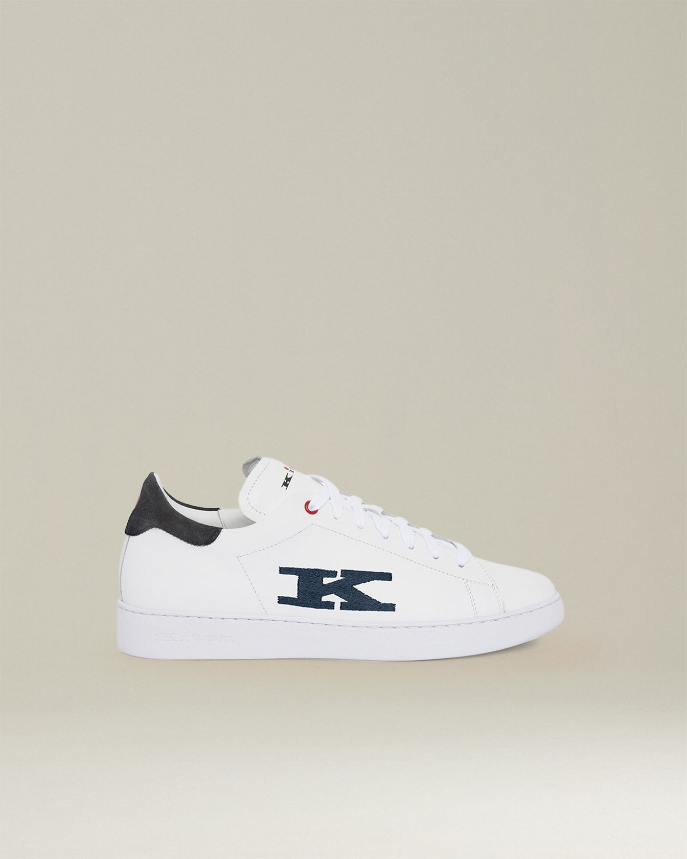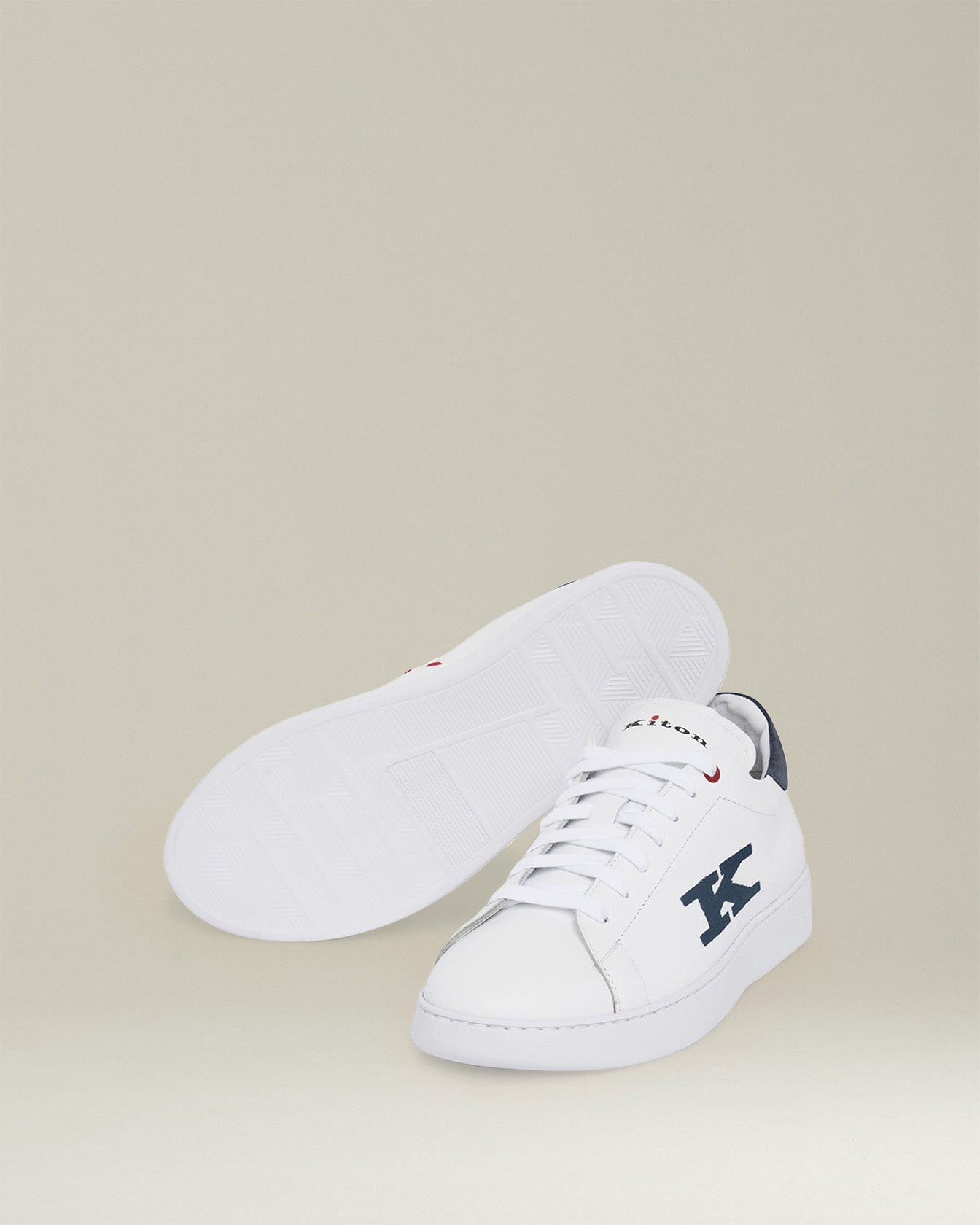 White calfskin sneakers with a cup sole, with an embroidered fabric logo and a dark grey suede heel tab. The sole in EVA, an innovative, flexible, hypoallergenic, non-toxic and shock-absorbing material, makes these sneakers exceptionally flexible, comfortable, and well-suited to year-round use. White calfskin lining. All Kiton items are made from carefully-selected leather that has been assembled by expert craftsmen in our atelier in Naples. The high-quality hides have been worked manually, using artisanal washes and dying methods. Every irregularity, colour clouding, veining or creases distinguishes Kiton products, making them unique. The Kiton mission is to innovate in terms of aesthetics and technique, while always keeping tradition in mind. For this item, we’ve interpreted sneakers according to the philosophy of the fashion house, placing quality first and foremost. The benefit of hand-made products lies in their added comfort. Dry clean to keep them looking their best. To maintain the beauty and characteristics of our products, we recommend following a few simple rules: avoid exposing the item to light, heat and humidity for extended periods of time; avoid contact with fats and oils, products for make-up, perfume and solvents; keep out of contact with water when possible.