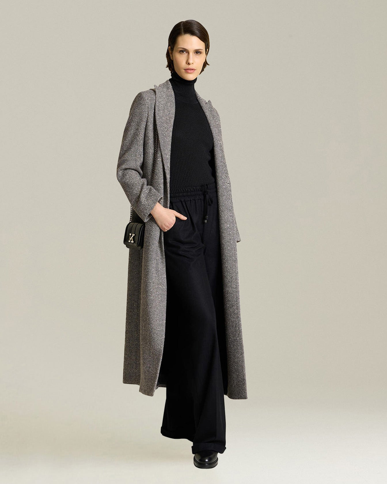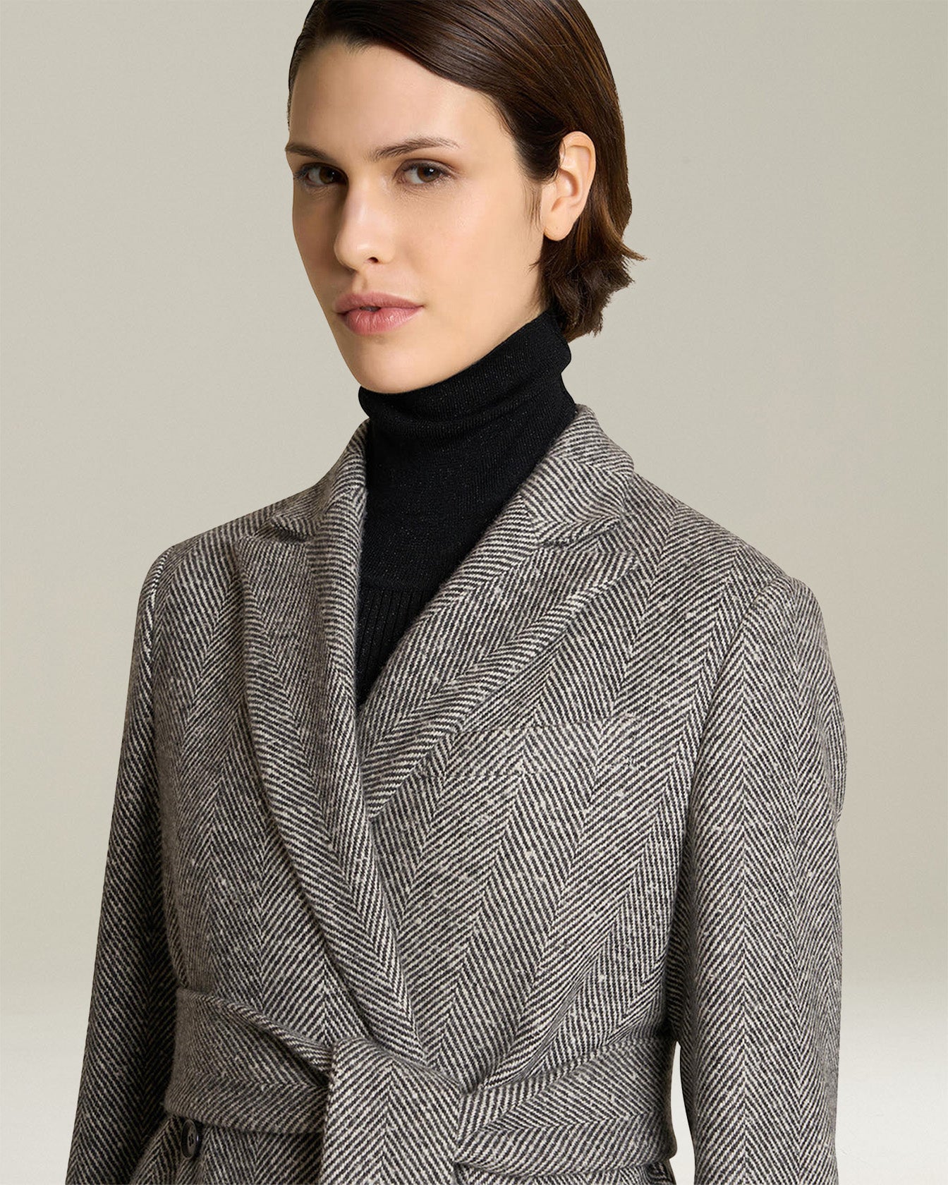 HERRINGBONE CASHMERE DOUBLE-BREASTED COAT
