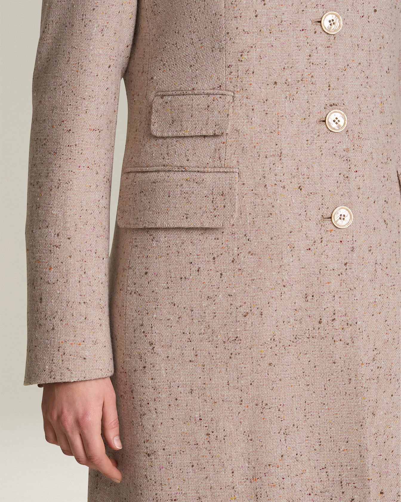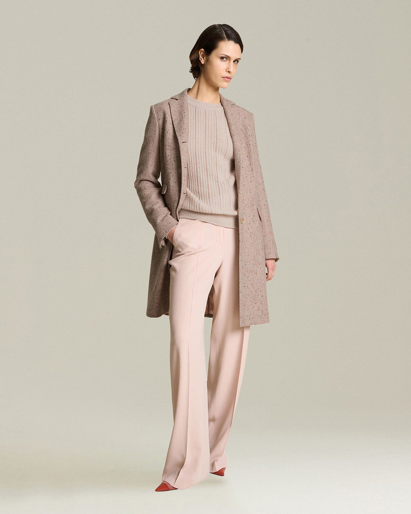 An icon of women’s wardrobes and a symbol of timeless elegance, the Kiton coat is ideal for formal occasions. For stylish women with a strong, passionate personality, expert connoisseurs of sartorial traditions. Expertly crafted in an exclusive soft cashmere yarn with a Donegal effect, this garment has a formal and sophisticated tailoring structure. The design is clean and essential, complemented by the ticket pocket detail. Each Kiton coat offers an experience of intimate and sophisticated luxury, the result of the skill of master tailors who create true sartorial masterpieces.