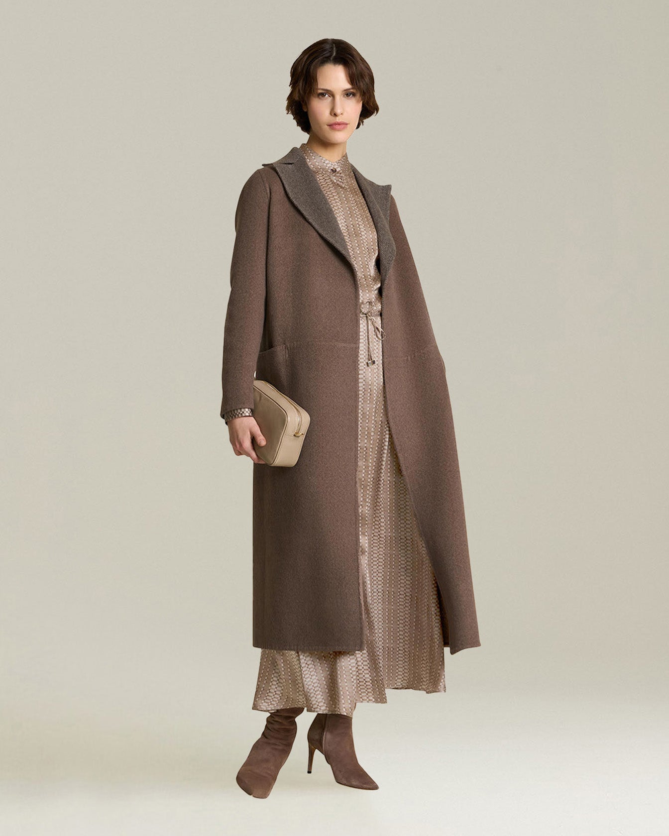 An icon of women’s wardrobes and a symbol of timeless elegance, the Kiton coat is ideal for all occasions. For stylish women with a strong, passionate personality, expert connoisseurs of sartorial traditions. Masterfully crafted from exclusive, soft cashmere yarn using the ancient double-knit technique, this reversible garment is an authentic textile masterpiece, featuring a robe design with peaked lapels and patch pockets. A herringbone pattern adorns the interior. Each Kiton coat offers an experience of intimate and sophisticated luxury, the result of the skill of master tailors who create true sartorial masterpieces.