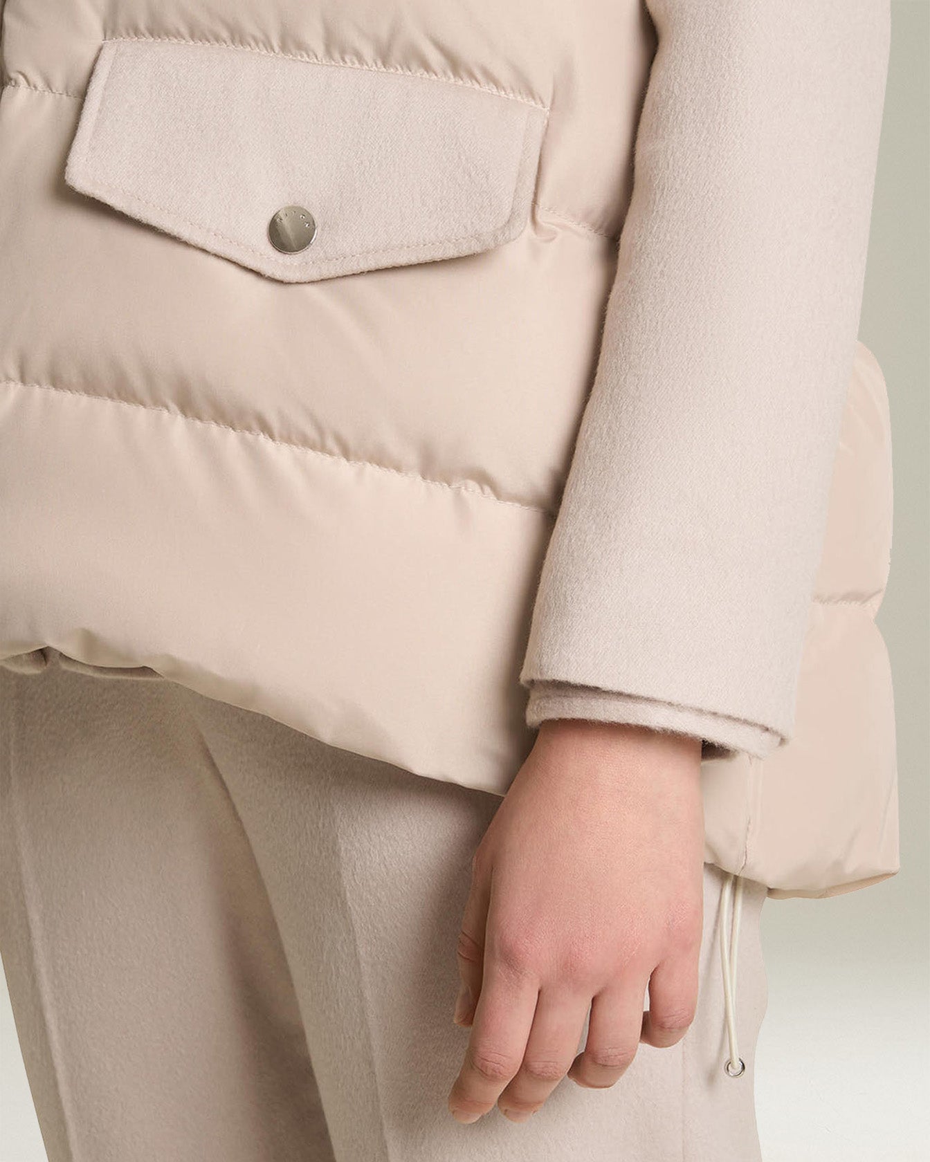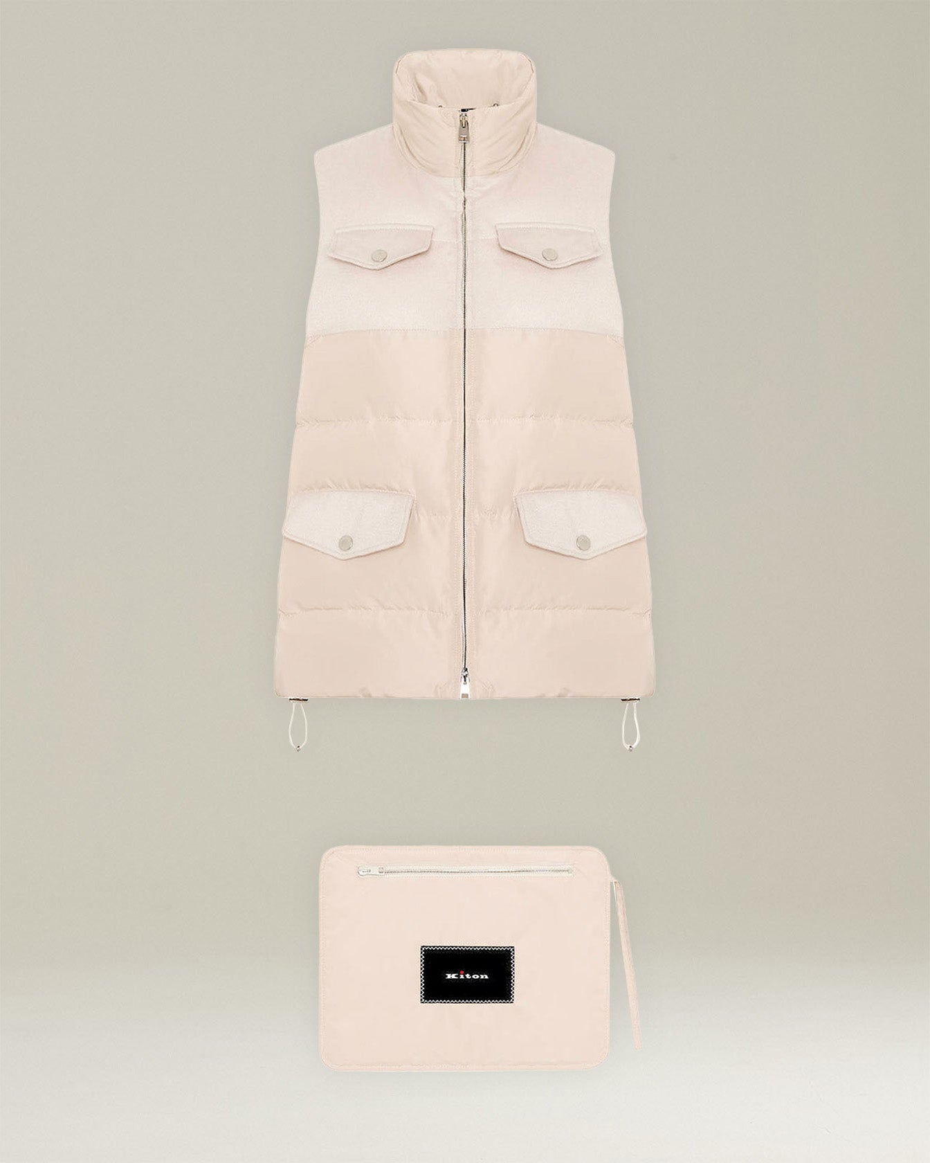 From the encounter between activewear and sartorial tradition comes this sophisticated quilted sleeveless jacket, made from technical fabric with a water-repellent, breathable and windproof membrane, enriched with fine cashmere inserts. The garment, featuring a zip fastening and four flap pockets with press studs, is perfect for your free time, lending a casual and sophisticated touch to your look. Cut, assembled and sewn with precisions in our manufacturing facility in Collecchio, this jacket reflects the essence of our sartorial culture through advanced technical processes.