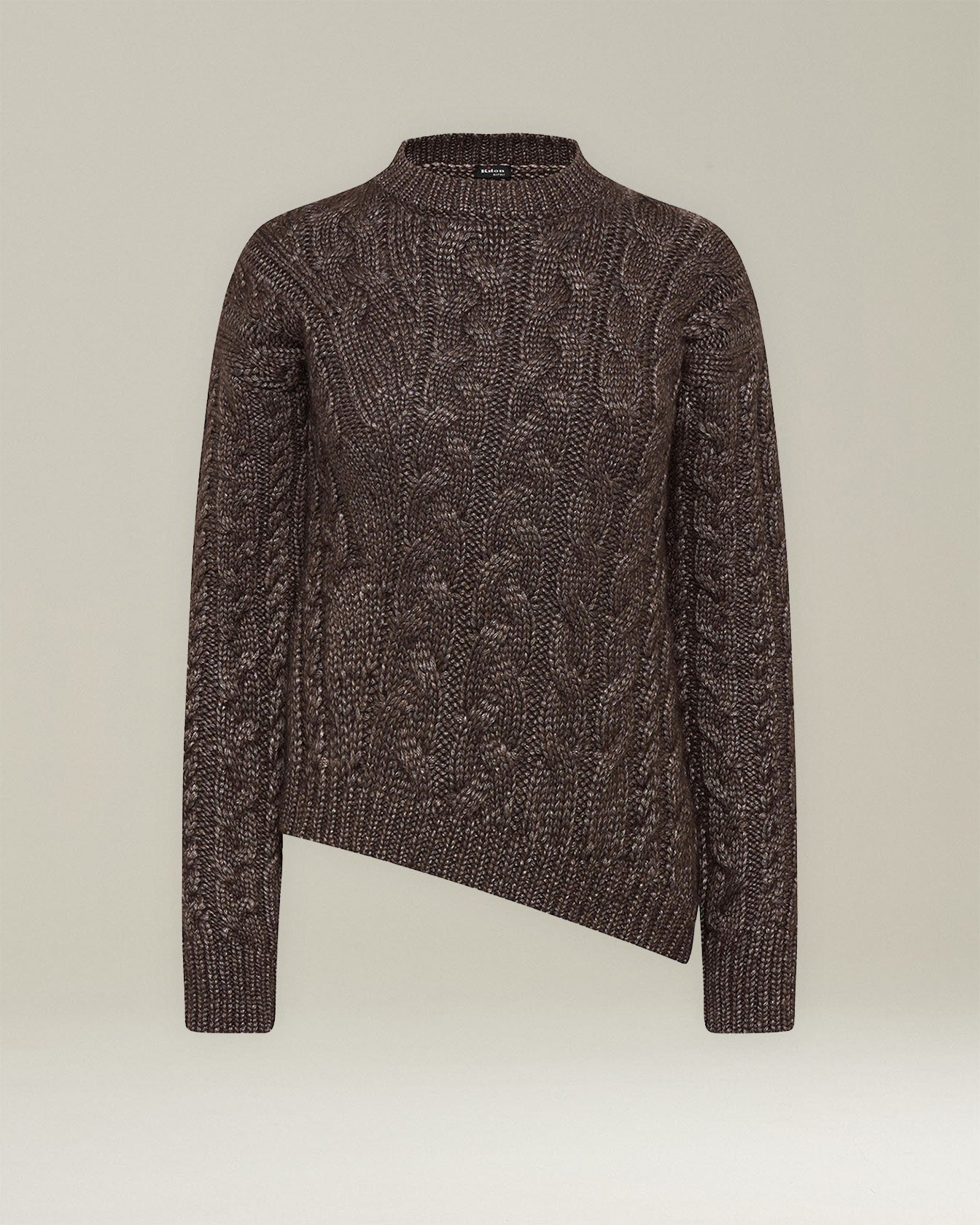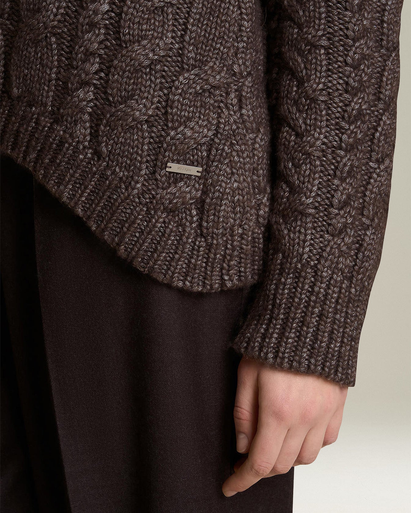 Kiton knitwear stands out thanks to its commitment to tradition and the quest for excellence. This crew neck jumper with irregular bottom is made from an exclusive cashmere and silk blend, embellished with a maxi braid knit that gives it a distinctive touch. The aesthetics and fit of the garment reflect a relaxed taste, with the ribbed trim enhancing the craftsmanship. Perfect for your free time, this Kiton jumper lends your casual style a refined, sophisticated elegance.
