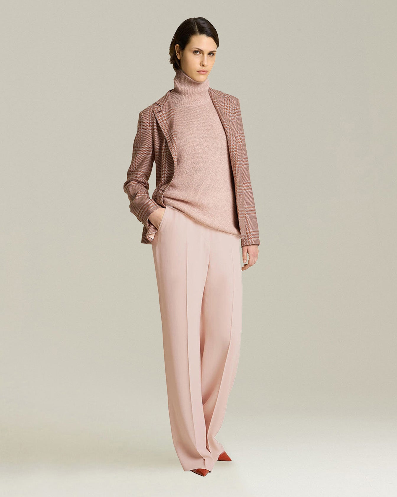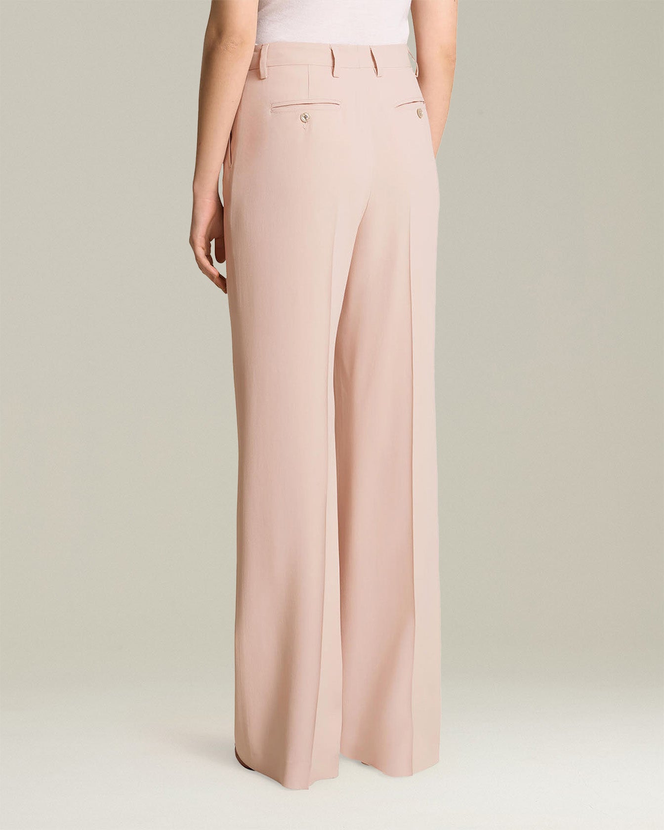 Trousers defined by a straight, soft cut with a light, flowing design. The lustre and fluidity of silk processed with technical finishes is complemented by the craftsmanship and classic details of the buttoning, the pockets set into the seam and the back welt pockets. The softness and leg length give it a relaxed feminine touch. These Kiton trousers can be worn on any occasion, whether styled as part of a sporty look or paired with a jacket and a heeled shoe for a casual-chic ensemble.