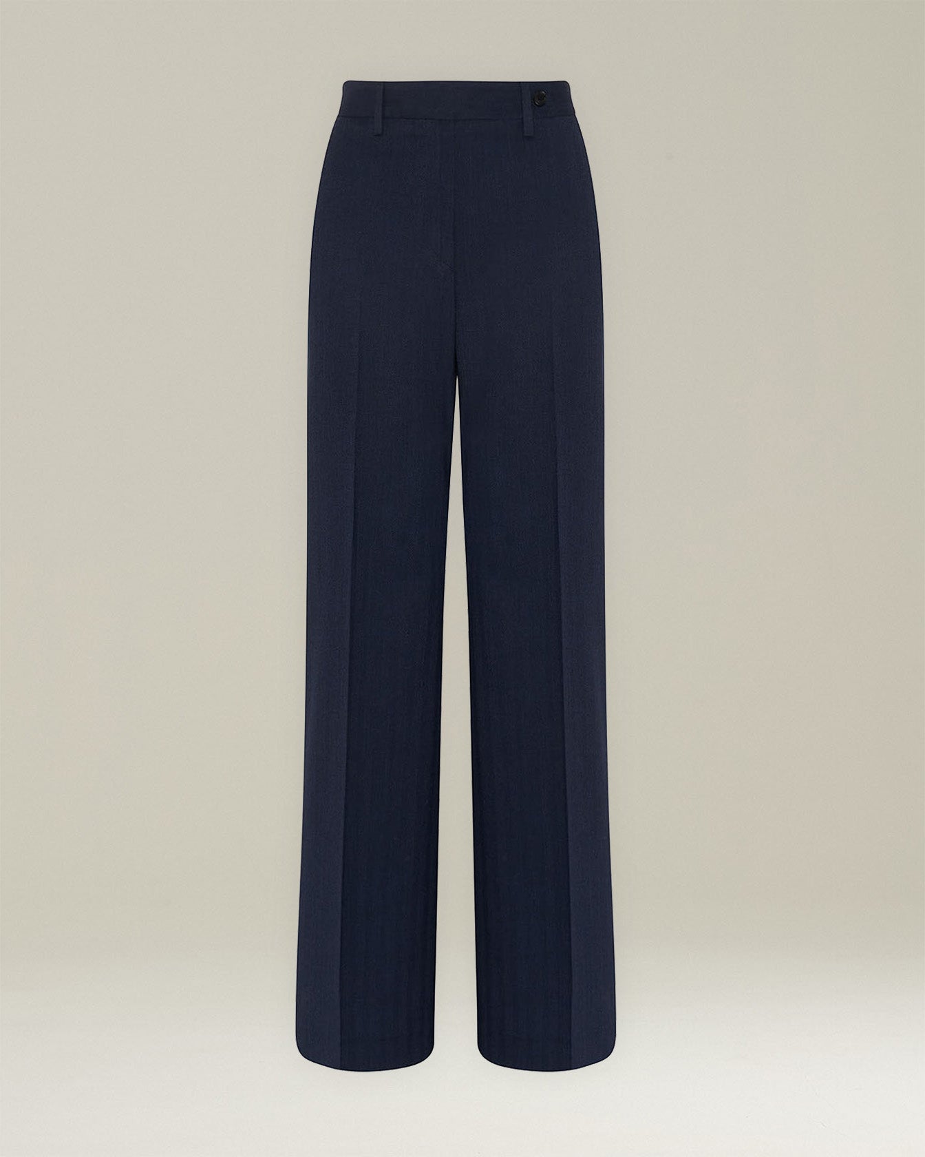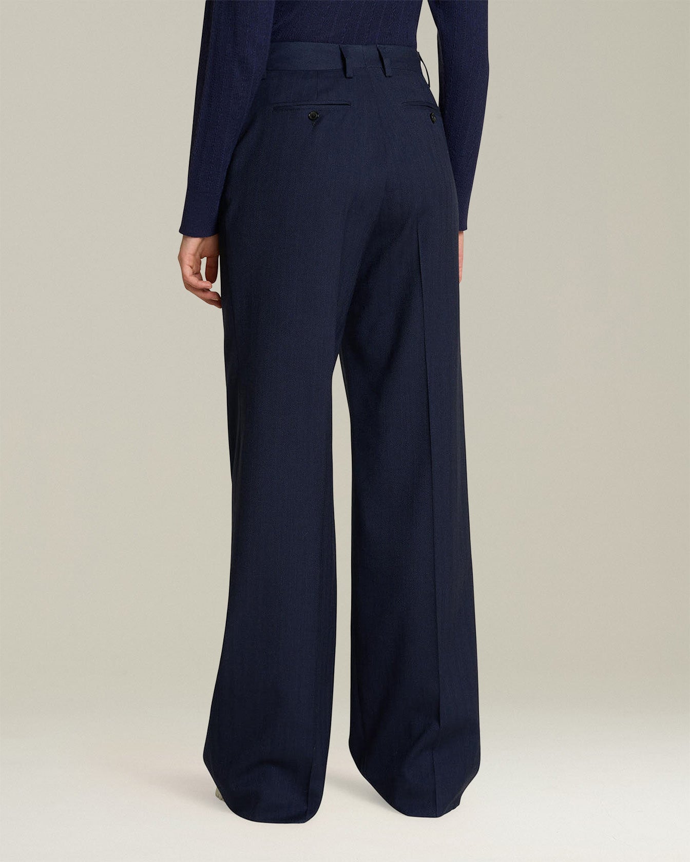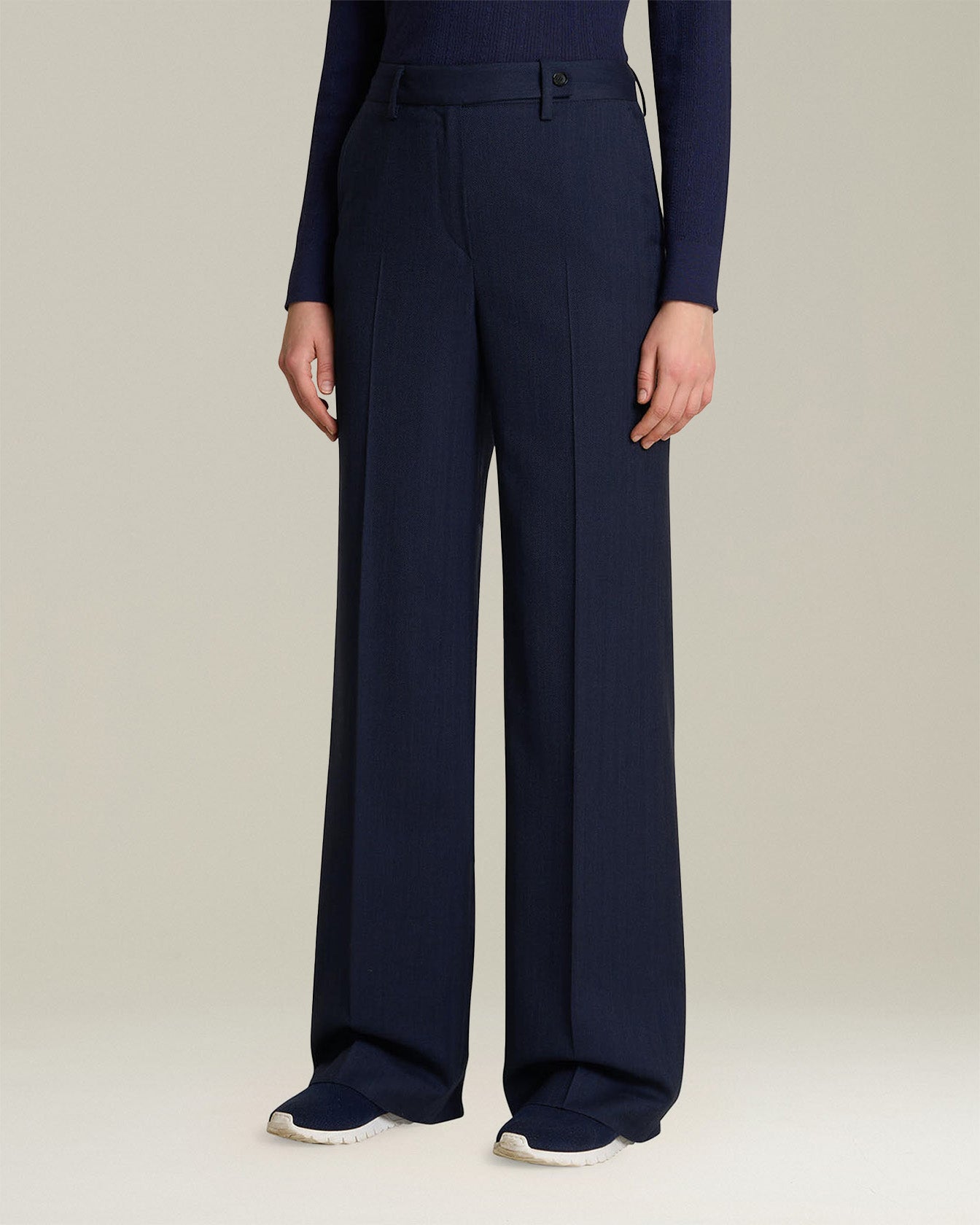 Trousers defined by a straight, soft cut with a light, flowing design. The herringbone texture of the wool fabric is complemented by the craftsmanship and classic details of the buttoning, seam pockets and back welt pockets. The softness and leg length give it a relaxed feminine touch. These Kiton trousers can be worn on any occasion, whether styled as part of a sporty look or paired with a jacket and a heeled shoe for a casual-chic ensemble.