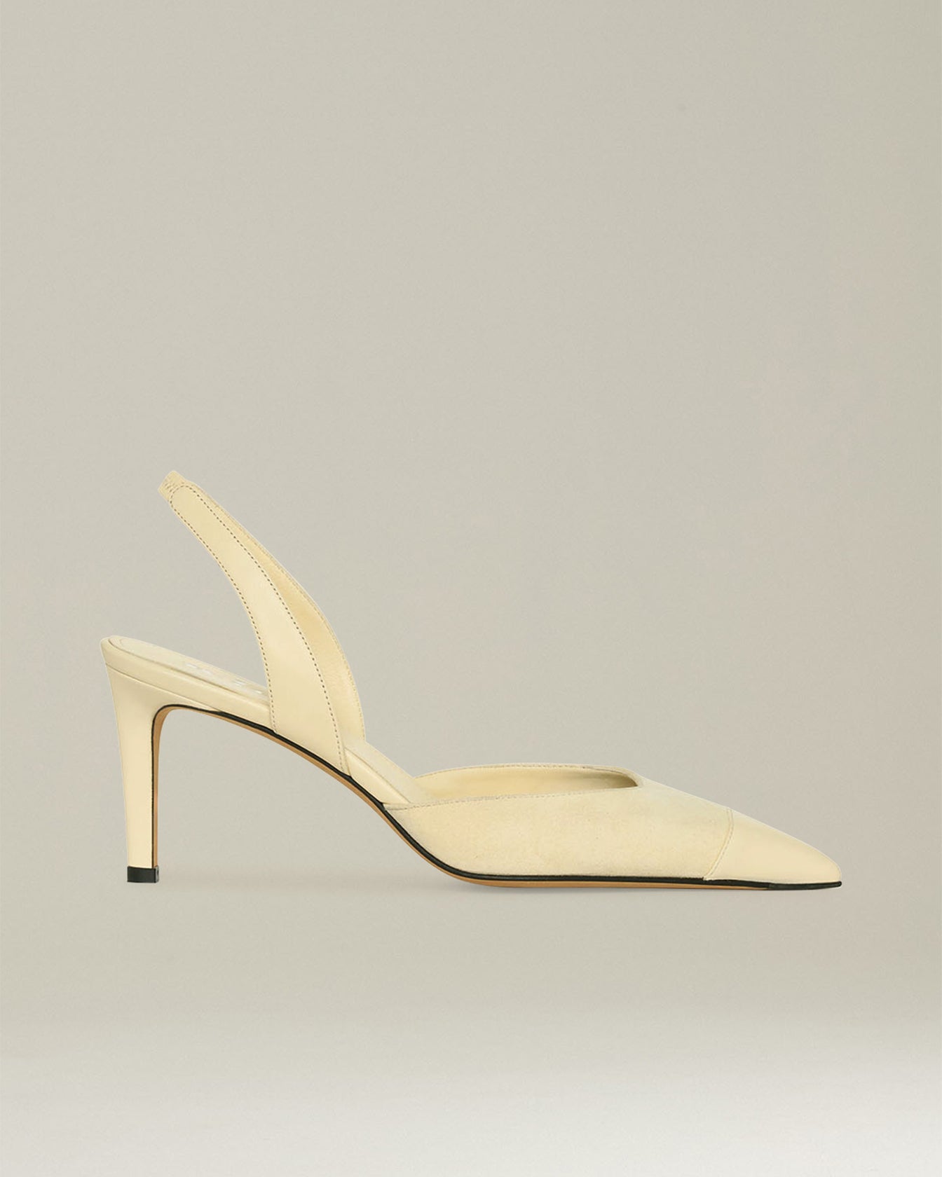 Kiton’s slingback pumps are an authentic icon of the women’s wardrobe, a celebration of elegance that combines sophistication and versatility. Crafted from the finest suede and embellished with leather detailing, their sleek, sophisticated silhouette embodies a simple appeal that never goes out of style. The 7cm heel provides momentum and grace, while the slingback design offers unique comfort and ensures a stable, secure fit.