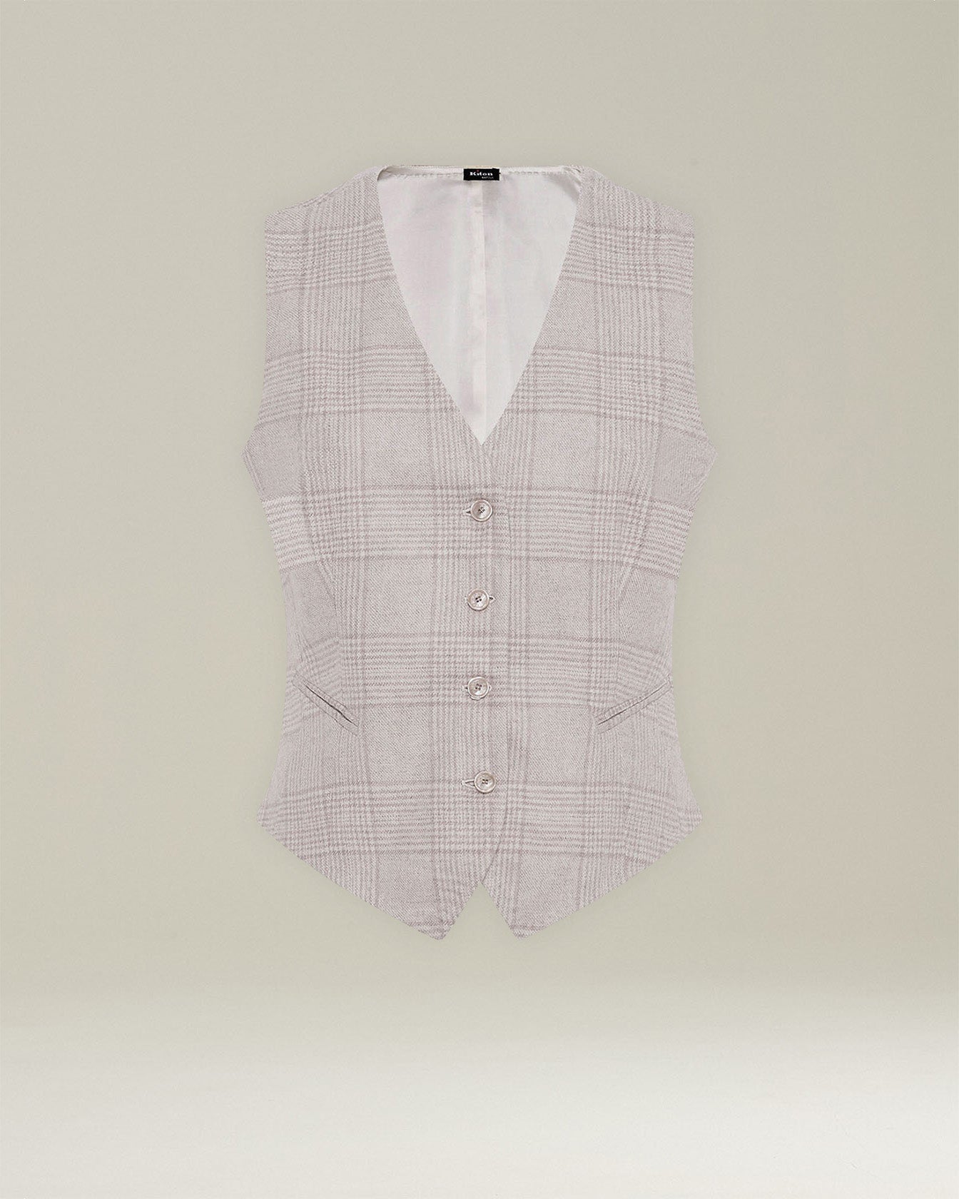Wool yarns are blended with soft cashmere to give a contemporary twist to the waistcoat, the iconic garment of traditional sartorial elegance, perfect for formal occasions in the ubiquitous three-piece suit or simply over a mini dress. The pure silk satin lining provides extraordinary comfort, making it easy to wear.
