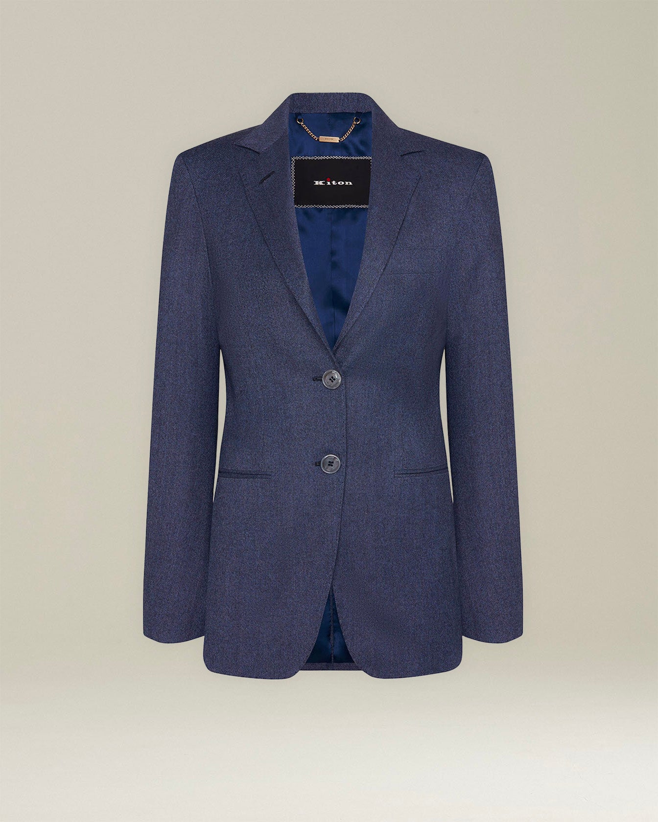 Designed for dynamic and sophisticated women who take on daily challenges with class and elegance, this single-breasted blazer reinterprets classic men’s tailoring with a modern twist. A fine blend of wool and cashmere accentuates the clean lines and sophisticated detailing, perfectly complementing the feminine silhouette. The impeccable design features peaked lapels, two welt pockets and a breast pocket. Each Kiton jacket offers an experience of intimate and sophisticated luxury, the result of the skill of master tailors who create true sartorial masterpieces.