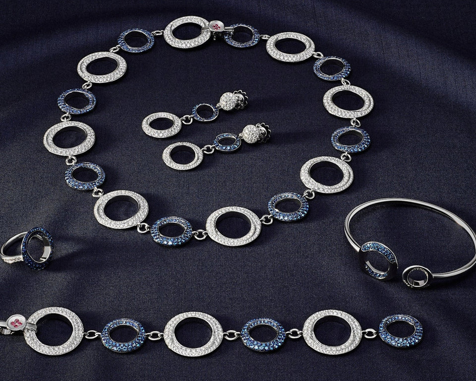 I materiali scelti raccontano la nostra estetica senza tempo: oro bianco e diamanti, oro giallo e diamanti brown, accostati con una sensibilità cromatica che appartiene da sempre al nostro modo di vedere il mondo. Immancabile il blu: intenso, profondo, vibrante. I nostri zaffiri evocano il celebre tessuto Diamante Blu, realizzato in esclusiva con lana da 14 micron. Un omaggio affettuoso, ispirato al nomignolo con cui Ciro Paone chiamava sua moglie: “Sei il mio diamante blu”.