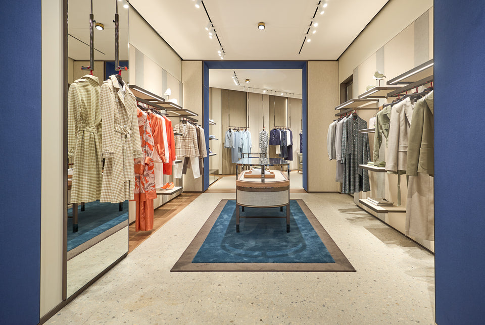 La superficie di 271 metri quadrati distribuiti su due livelli trasmette una sensazione di spazi ampi, ma anche di intimità grazie all'uso intelligente di superfici riflettenti e alla luce naturale che filtra dalle grandi vetrate che si affacciano su Goethestraße.Al piano terra i clienti trovano i capi della collezione Donna, mentre il primo piano è dedicato all'universo maschile e anche a un’area riservata al servizio Su Misura, con una selezione di tessuti pregiati selezionati esclusivamente per la nuova boutique.Il layout flessibile della boutique, con arredi a parete telescopici che consentono una dinamica esposizione dei capi, è stato progettato per valorizzare ogni dettaglio dell'abbigliamento. L'illuminazione a LED ad alto indice di resa cromatica garantisce una visibilità perfetta, esaltando le tonalità e i tessuti dei capi.