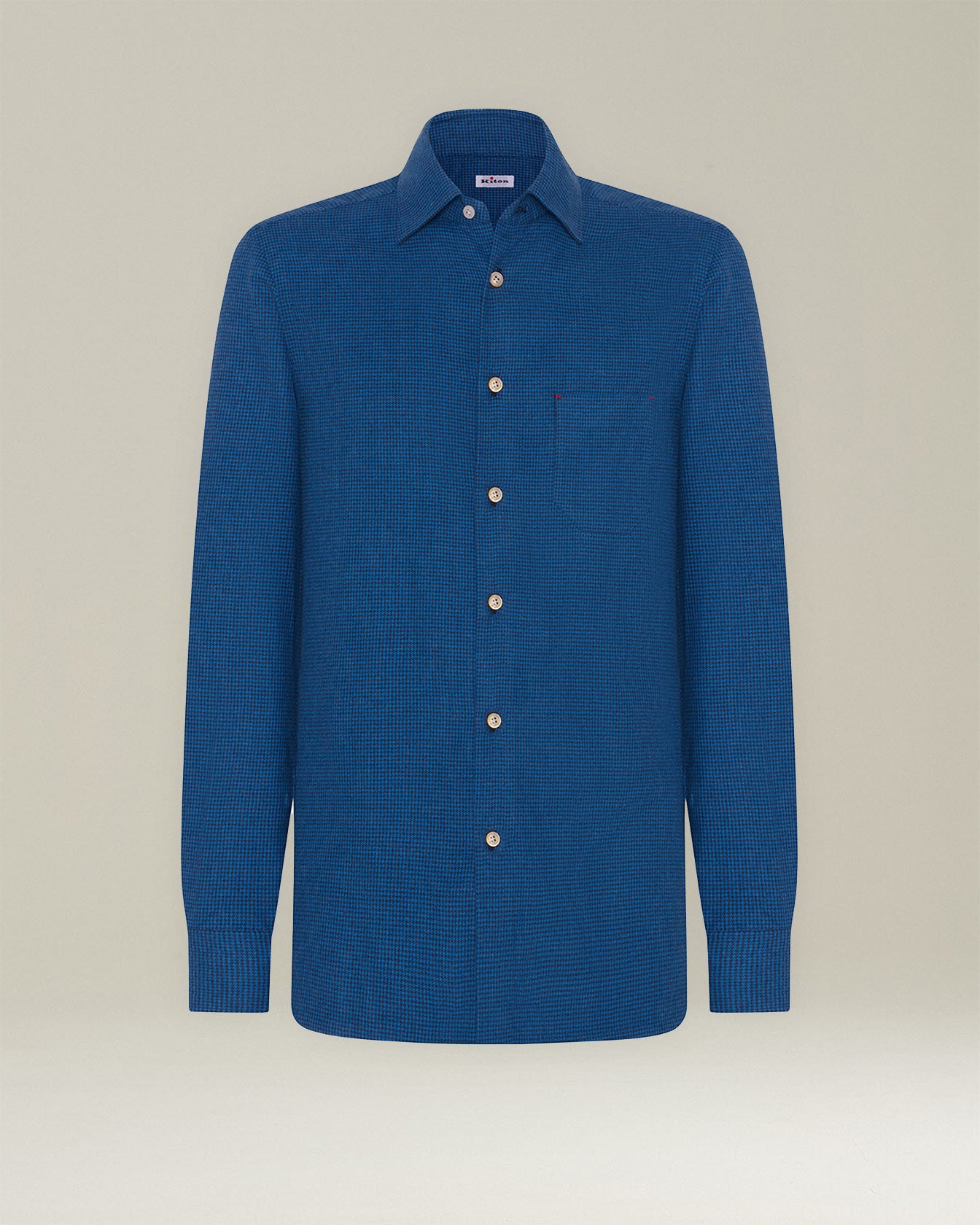 La camicia Kiton è un capo intimo che abbraccia con grazia il corpo di chi lo indossa, un caleidoscopio di stampe, geometrie e colori raffinati, dove ogni singolo taglio riporta in vita il disegno originale. I tessuti si intrecciano con maestria, creando una camicia che diventa un mosaico da indossare. Il fatto a mano, con la sua cura e minuzia, rende ogni pezzo unico, una storia a sé stante. La morbidezza dei materiali offre un piacere tattile ineguagliabile, avvolgendo le dita in una sensazione di lusso. Ogni dettaglio è un segno di pregio fino ai filati pregiati utilizzati: seta per le asole, mouliné per le iniziali, fibra per cucire i bottoni e un filato speciale, sottilissimo, per le ribattiture. Il risultato è un capo elegante e confortevole, che trasmette immediatamente l’esperienza e la cura artigianale.