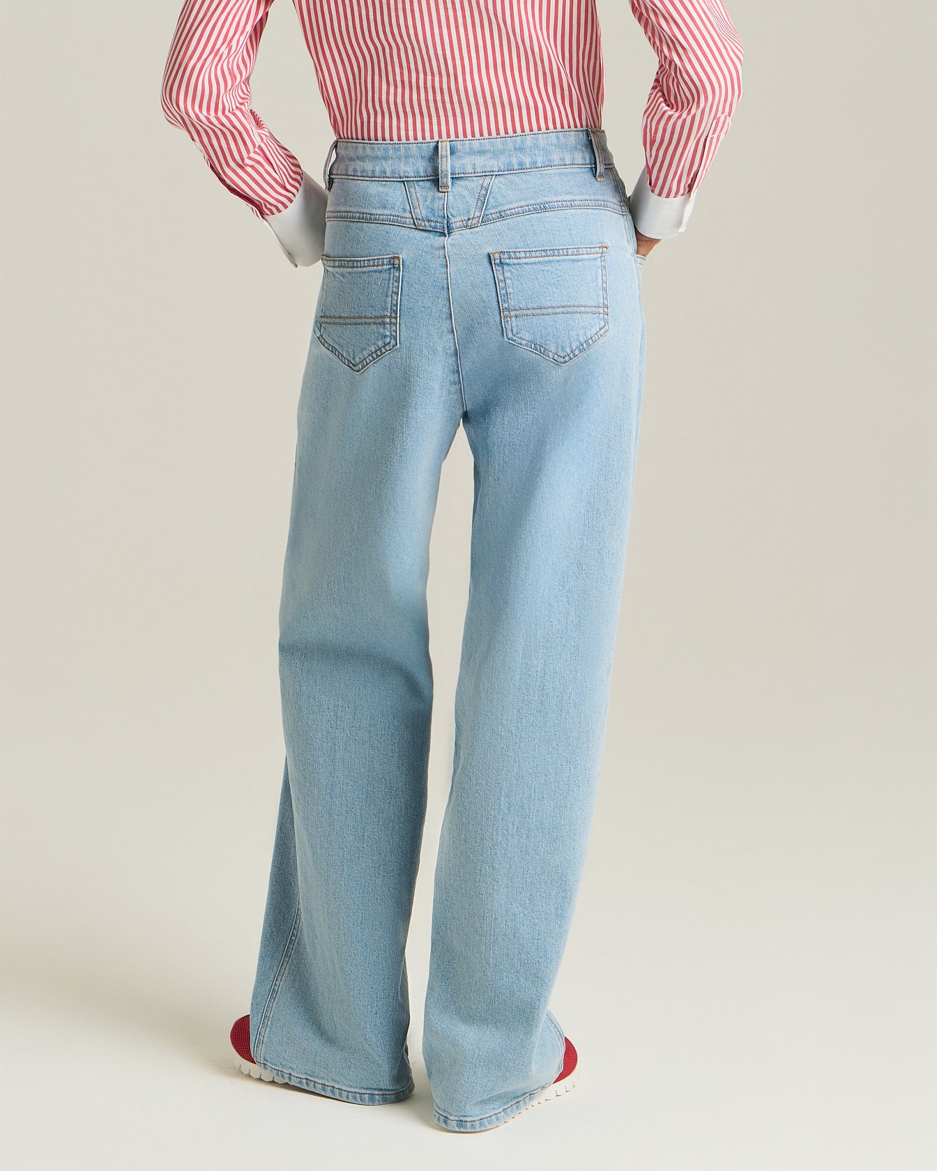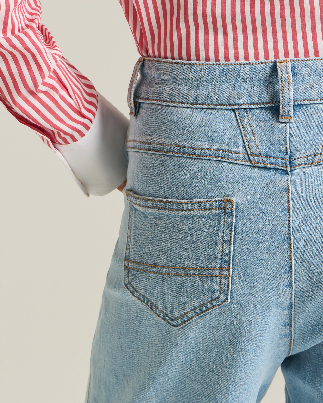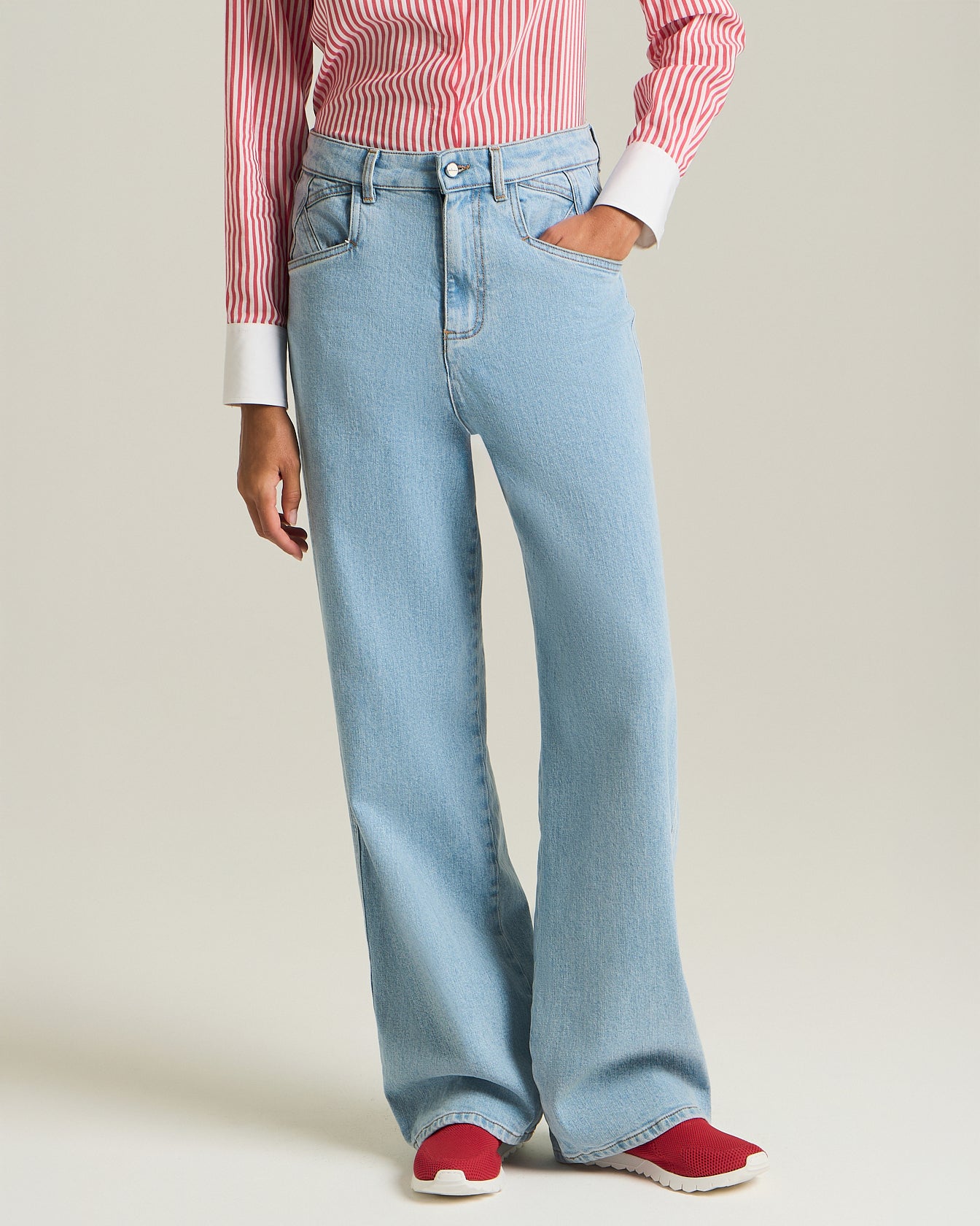 Il contrasto tra un’anima casual e dettagli sofisticati definisce l'iconico jeans 'cinque tasche' di Kiton, realizzato in denim con vestibilità slim e vita alta, caratterizzato da una gamba a zampa d'elefante. Questo capo rappresenta l'essenza dell'eleganza rilassata e moderna, fondendo leggerezza e resistenza grazie alle doppie cuciture, che ne assicurano un'eccezionale durabilità. Una piccola percentuale di elastan nel tessuto offre un comfort senza pari, abbracciando delicatamente la gamba senza compromettere la forma. Privo di pince, il pantalone presenta cuciture a contrasto che ne esaltano il design. A completare il look, il ricamo del logo all'interno della tasca conferisce un tocco di classe, elevando questo jeans a un livello di raffinatezza ricercata.