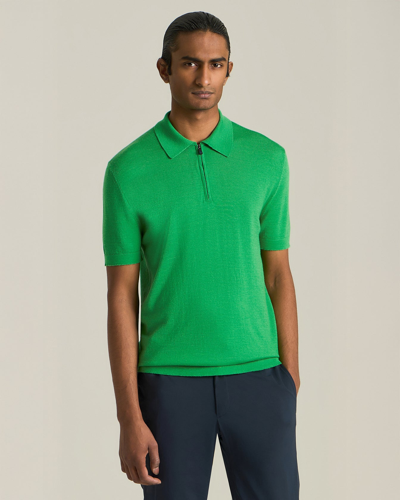 Il tòpos della cultura street viene elevato a una dimensione deluxe con questa polo, espressione di un'eleganza contemporanea che si colloca a metà strada tra il travelwear e l'urbanwear. Realizzata in una preziosa maglia di lana e seta, questa polo con zip incarna l'active tailoring con un'anima urbana, dinamica e moderna.
