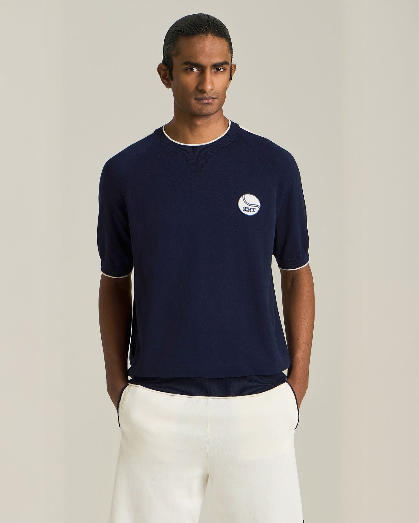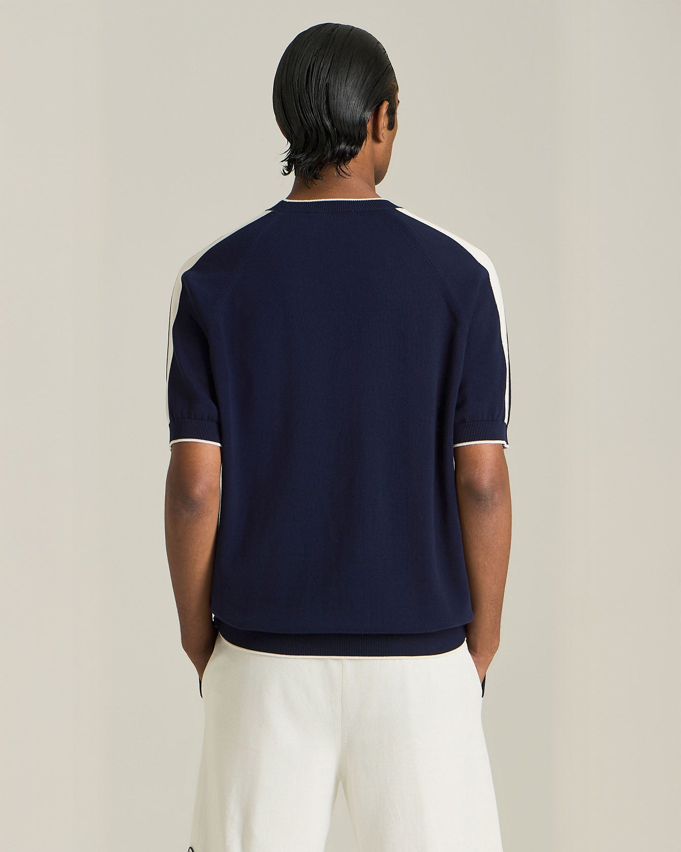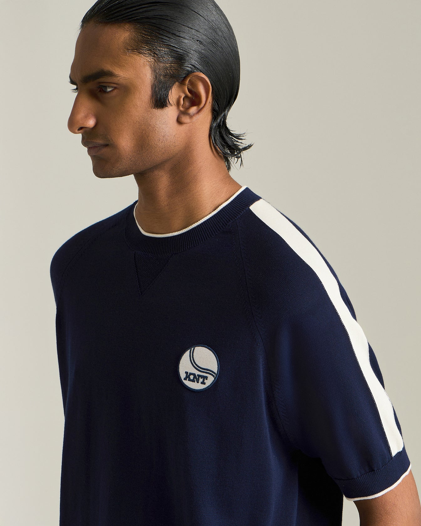 L'eleganza senza tempo incontra lo spirito sportivo d'élite in questa maglia firmata KNT, l'anima sperimentale di Kiton. Ispirata al fascino intellettuale del Grand Tour artistico del XVIII e XIX secolo, questa capsule attraversa l'universo iconico del tennis, una delle discipline più sofisticate e carismatiche. La maglia girocollo, realizzata in cotone di alta qualità, presenta dettagli distintivi come le bande a contrasto sulle maniche e un emblema esclusivo a forma di pallina stilizzata con le tre lettere KNT. Il design dal fit asciutto evoca lo stile essenziale degli anni '70, un'epoca in cui la tecnologia non rubava la scena, lasciando spazio all'essenza del gioco.