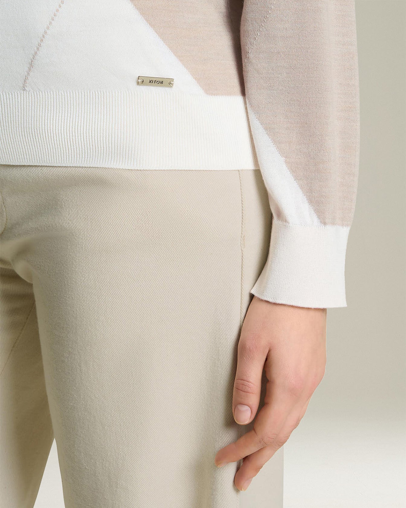 Tradizione e avanguardia si intrecciano attraverso un filo di lana nella maglieria Kiton, che rappresenta un profondo rispetto per l'artigianato e una costante ricerca dell'eccellenza. Ogni capo è realizzato nel nostro opificio di Fidenza, seguendo un meticoloso processo che comprende ventidue fasi, di cui metà eseguite rigorosamente a mano. I telai utilizzati per dar vita ai capi sono esemplari rari di Bentley-Cotton, veri e propri capolavori dell'ingegneria tessile. Un tempo destinati alla produzione di calze per uomo e donna, sono stati adattati per la lavorazione della lana e di materiali affini.