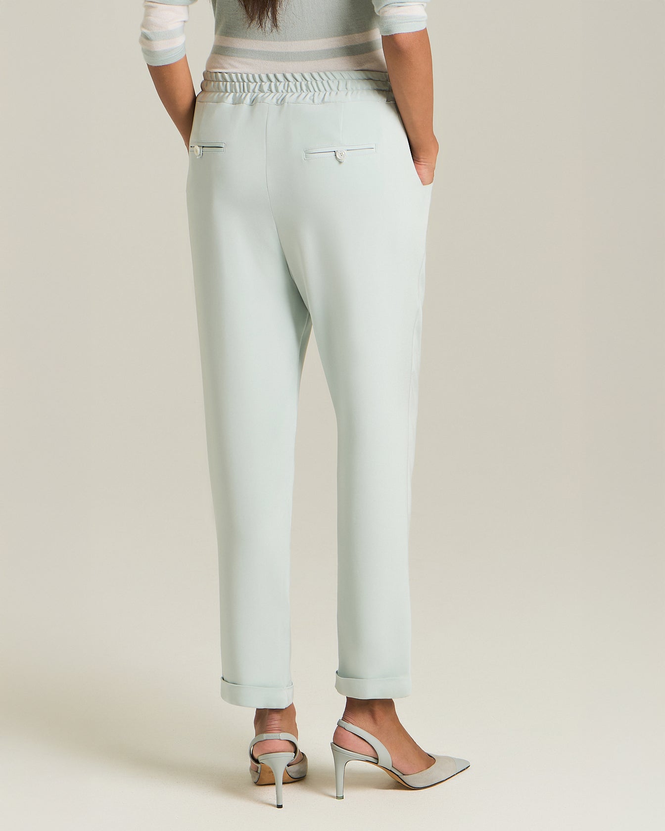 Kiton concepisce i suoi pantaloni, sia nella loro essenza casual che in quella sportiva, presso il proprio opificio di Marcianise nei pressi di Napoli, un luogo dove l’arte della sartoria si intreccia in modo sublime con l’uso di materie prime di altissima qualità apprezzate per la loro raffinatezza. I modelli, caratterizzati da un taglio impeccabile e una vestibilità ergonomica, vengono costantemente reinterpretati per creare capi moderni che esaltano la silhouette di chi li indossa, rendendoli perfetti per ogni occasione. La filosofia di Kiton si manifesta attraverso un'accurata attenzione ai dettagli e alla qualità, creando pantaloni che non sono meri capi d’abbigliamento, ma autentici simboli di stile e comfort.
