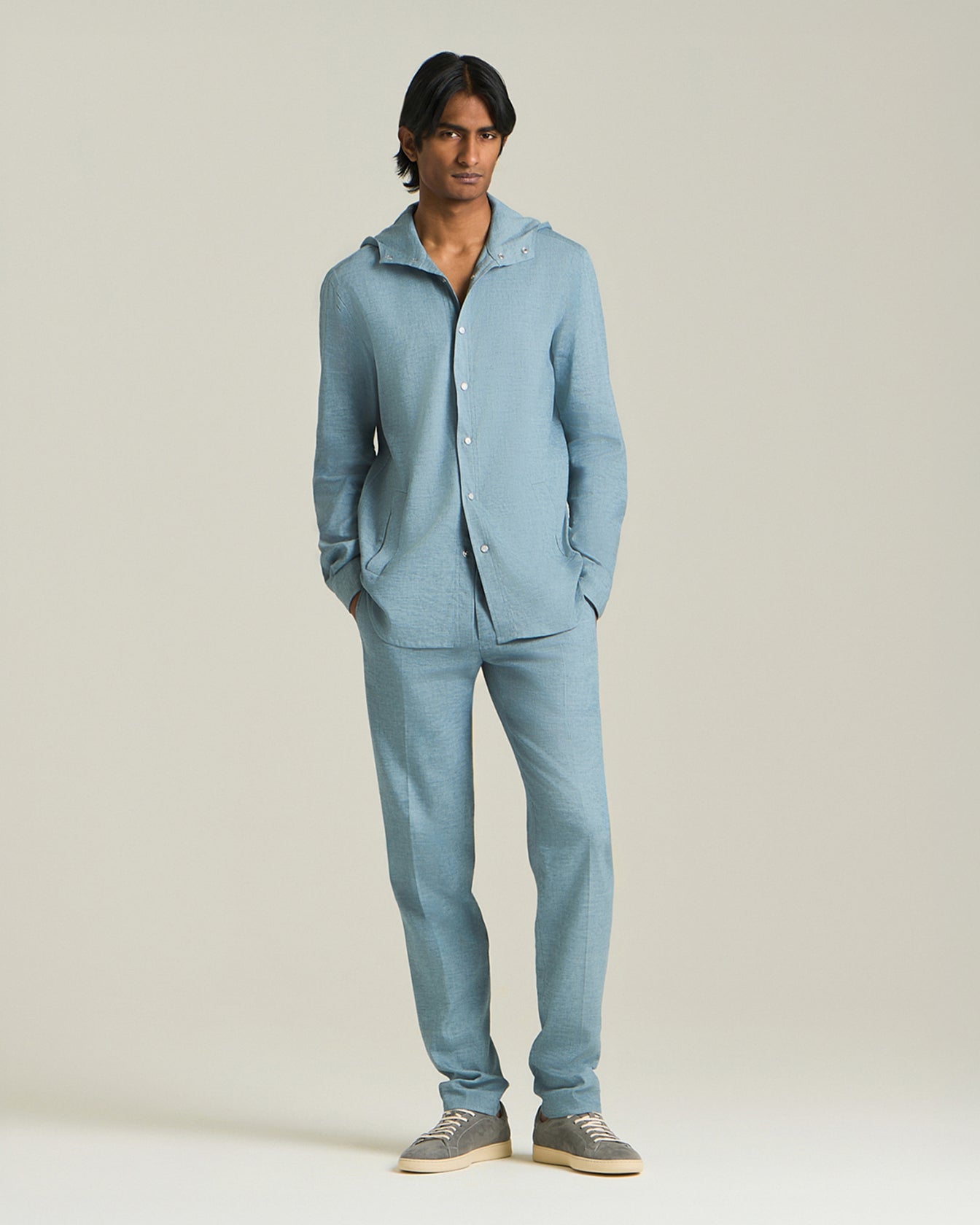 Il pantalone Kiton viene proposto in una versione ancora più rilassata, con una vestibilità ampia e confortevole. Realizzato in un esclusivo blend di lino, si distingue per i dettagli come le tasche a filo e le pence alla francese. La vita con coulisse, dall'appeal sportivo, si fonde armoniosamente con i richiami sartoriali, esprimendo alla perfezione l’equilibrio tra eleganza e informalità. Perfetto per chi cerca praticità senza rinunciare al lusso, questo pantalone è la scelta ideale per un viaggio all’insegna del comfort e dello stile.