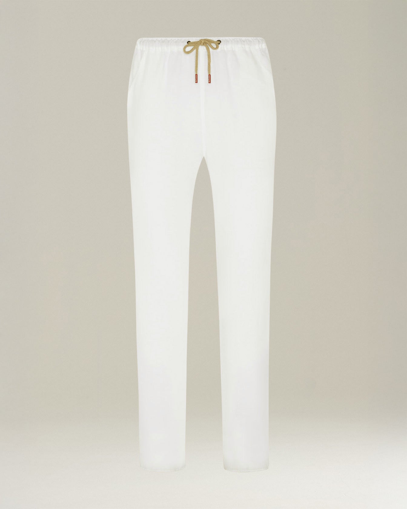 Pantalone pull-on comfort realizzato in pregiato lino irlandese, interamente tagliato e cucito a mano a Napoli dai nostri esperti artigiani. Questo pantalone, caratterizzato da un’attitudine leisure, si distingue per la sua vestibilità leggermente over, mantenendo al contempo una costruzione e un taglio sartoriale di alta qualità. La vita è dotata di elastico e coulisse, offrendo un comfort senza pari e reinterpretando il concetto di eleganza rilassata.