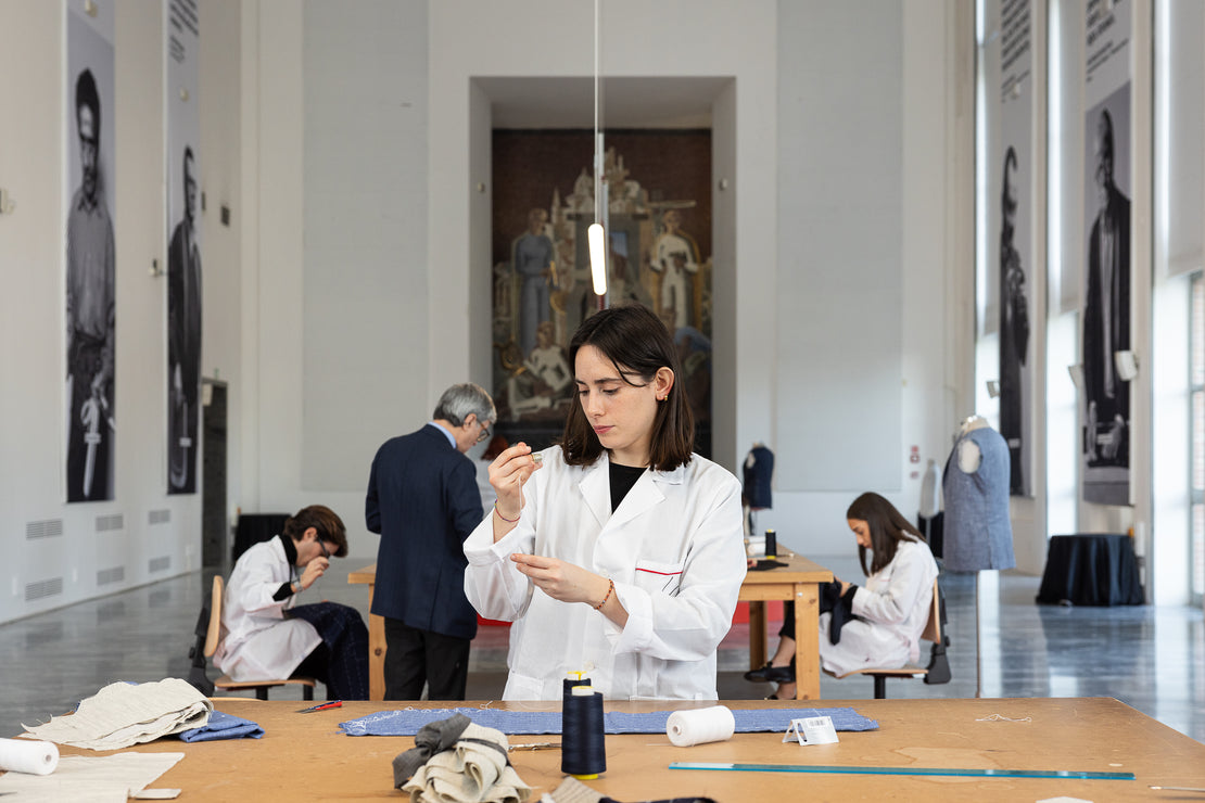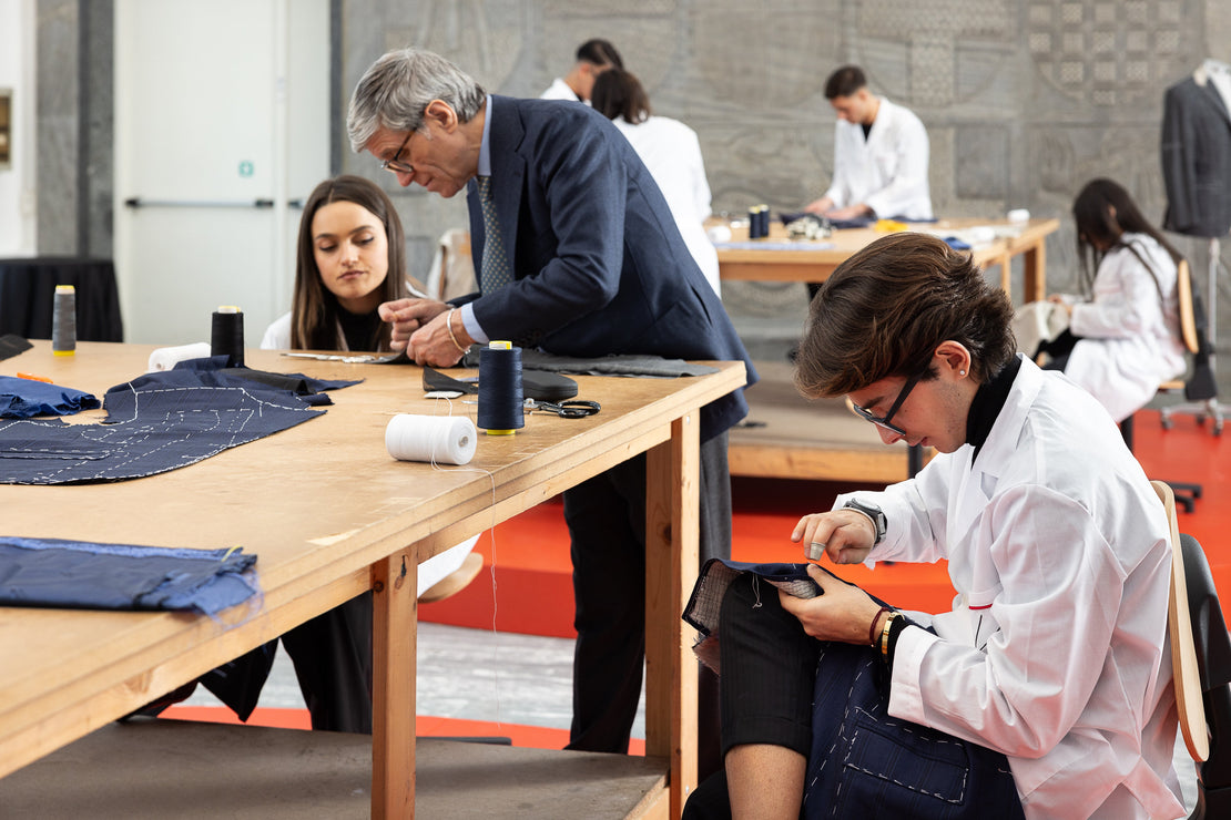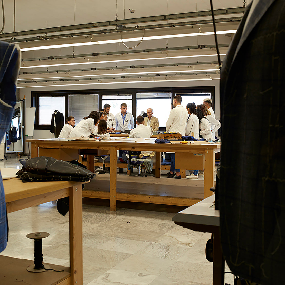 Formiamo le nuove generazioni di sarti nei laboratori della maison. Qui gli aspiranti artigiani vivranno l’arte di creare abiti senza tempo, trasmessa dal vivo dai nostri maestri.