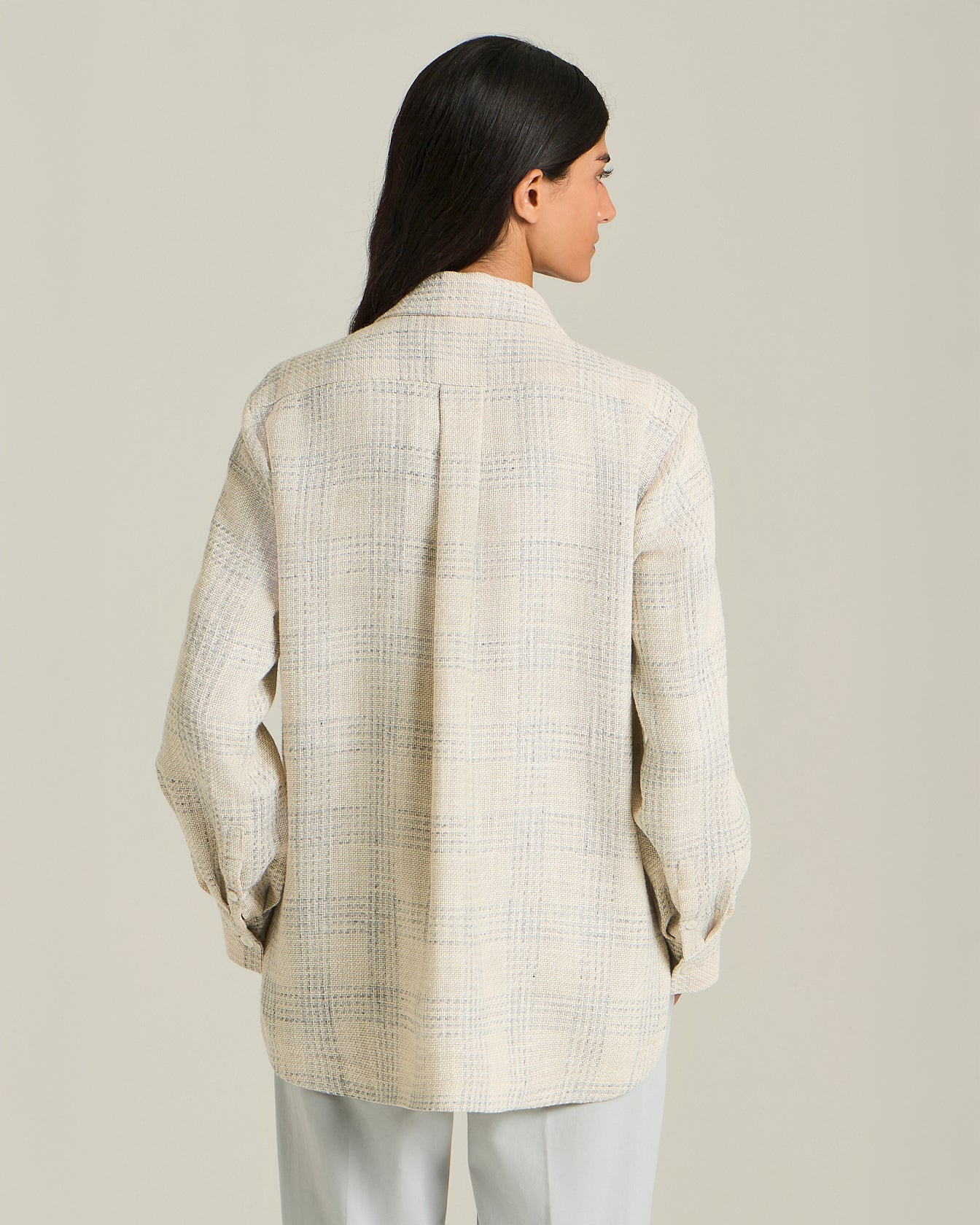 SILK AND LINEN BLEND CHECKED OVERSHIRT